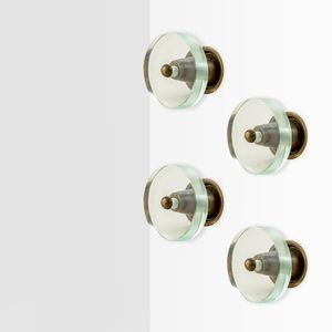 8,5x7 cm. Italia, anni 50 quattro appendiabiti in ottone e vetro trasparente di forte spessore, lievi usure