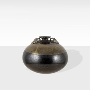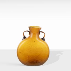 16x19,5 cm. Murano, anni 80 vaso in vetro colorato e foglia d'oro, firma a punta