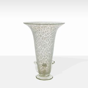 24x19,5 cm. Murano, anni 60 vaso in vetro trasparente con inclusione di bolle d'aria