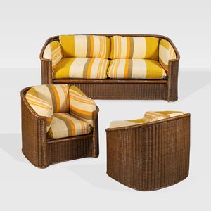 divano 73x177x70 cm. - poltrone 74x78x70 cm. anni 70 salotto composto da un divano e due poltrone in midollino [..]