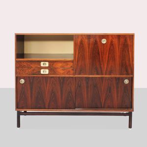114x86x44 cm. anni 60 credenza in legno e ceramica policroma, lievi usure