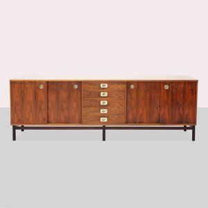 85x150x52 cm. anni 90 cassettiera stile Brutalista in legno, ottone e marmo