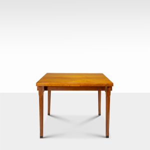 44x42x42 cm. anni 50 coppia di tavolini in legno, ottone e vetro specchiato colorato, lievi usure