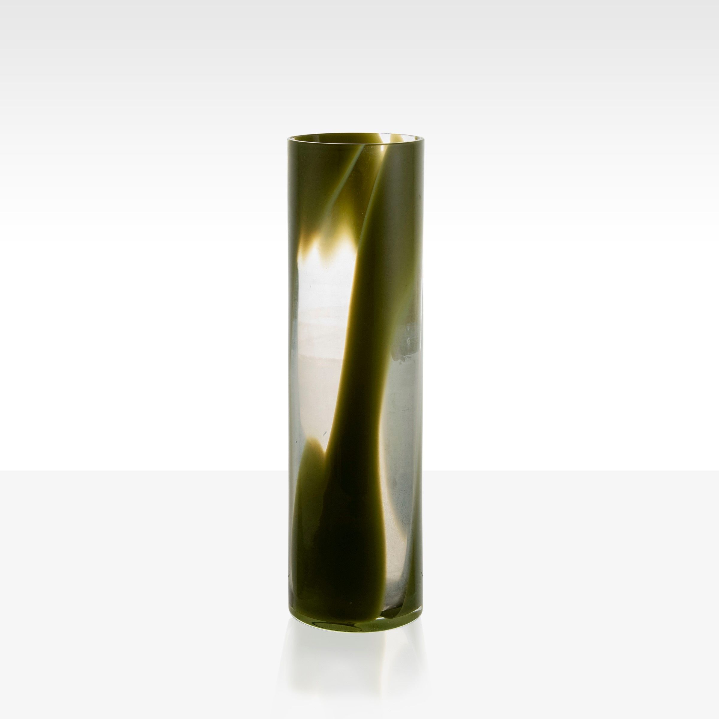 Murano, anni 60 vaso cilindrico in vetro soffiato trasparente e colorato