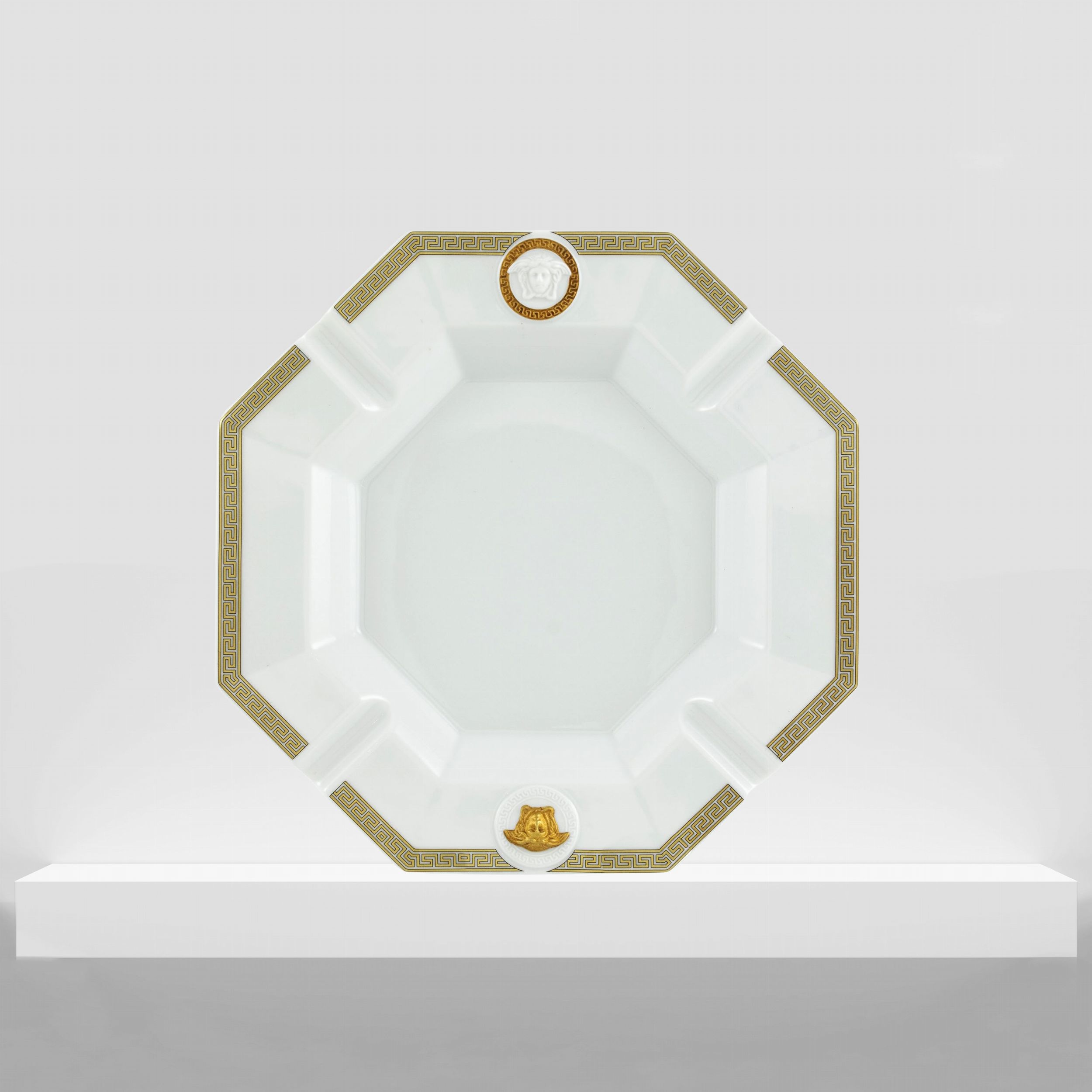 Germania, XX Sec. posacenere collezione Gorgona in porcellana bianca e dorata, marchio della produzione