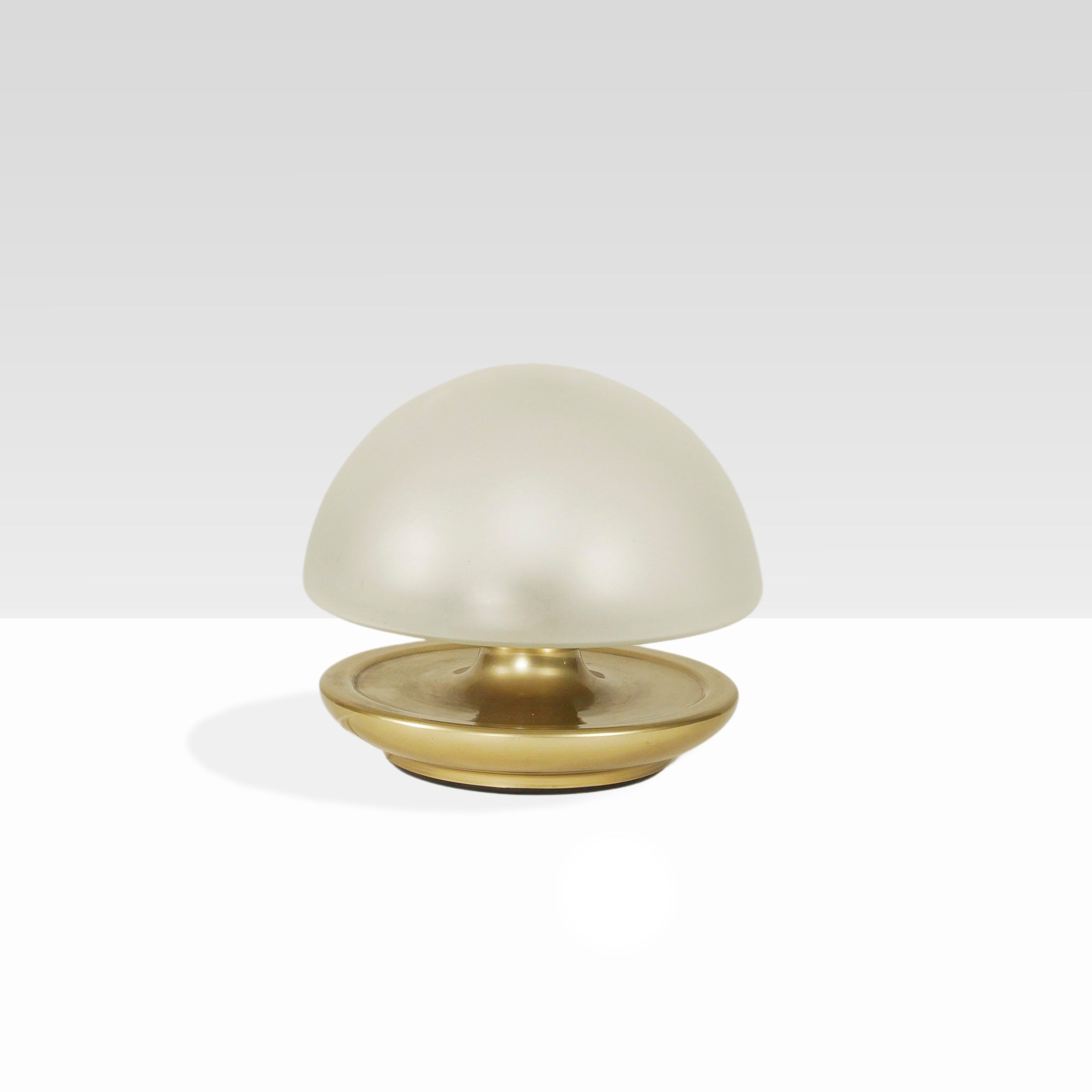 Italia, anni 70 lampada da tavolo mod. VBO in alluminio dorato e vetro smerigliato, marchio della produzione
