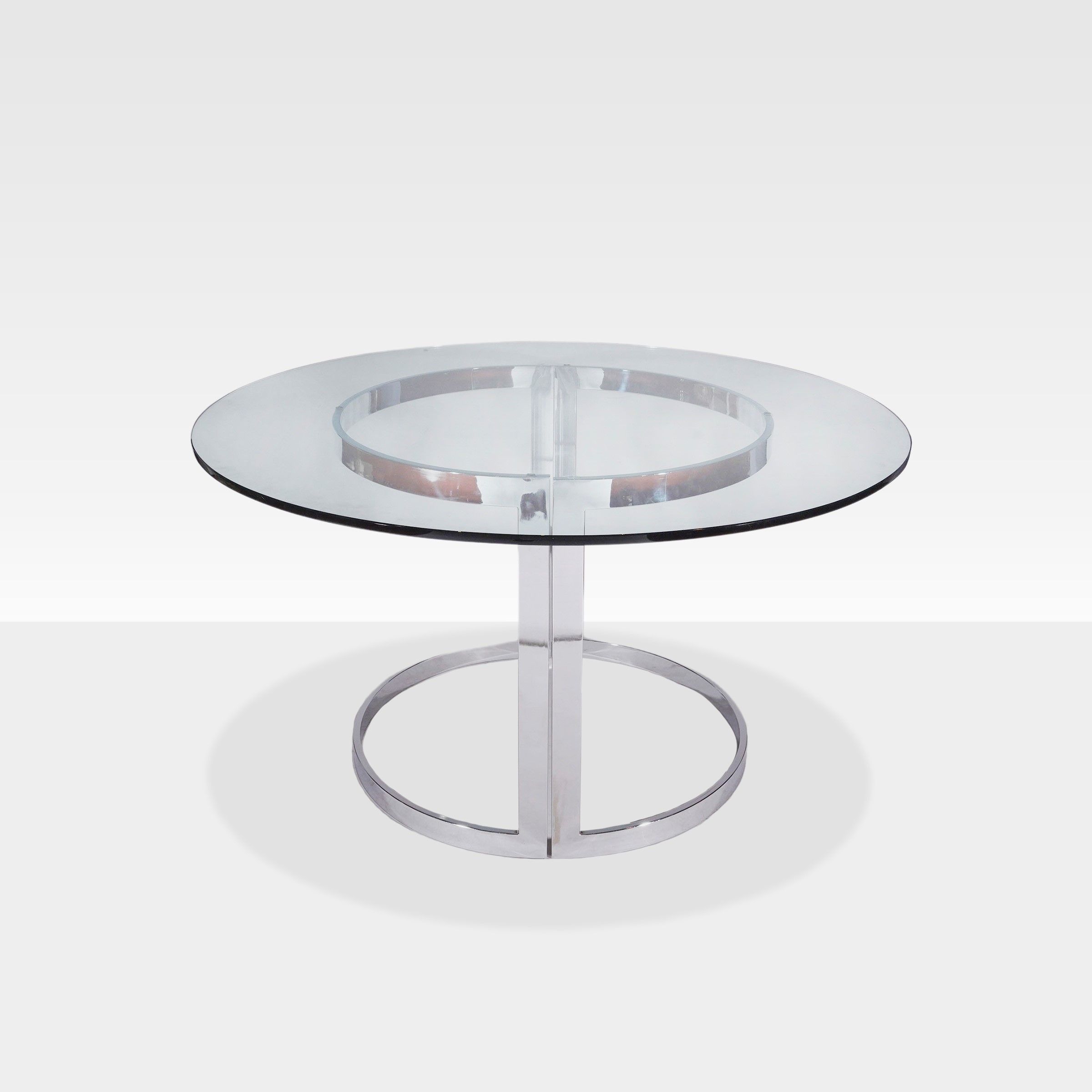Italia, anni 70 tavolo circolare in metallo cromato e vetro trasparente