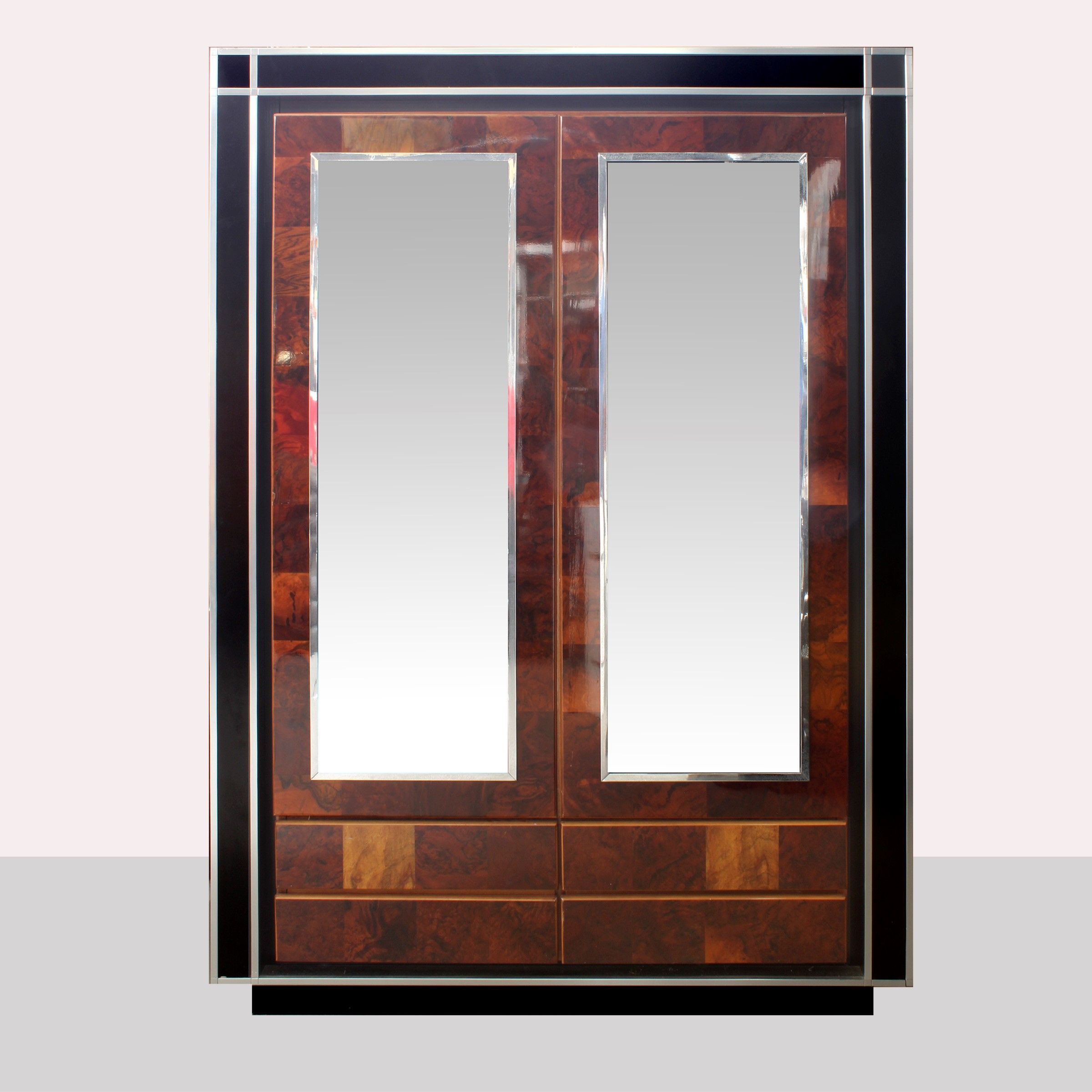 Italia, anni 70 mobile credenza in metallo cromato, legno e vetro trasparente, lievi usure