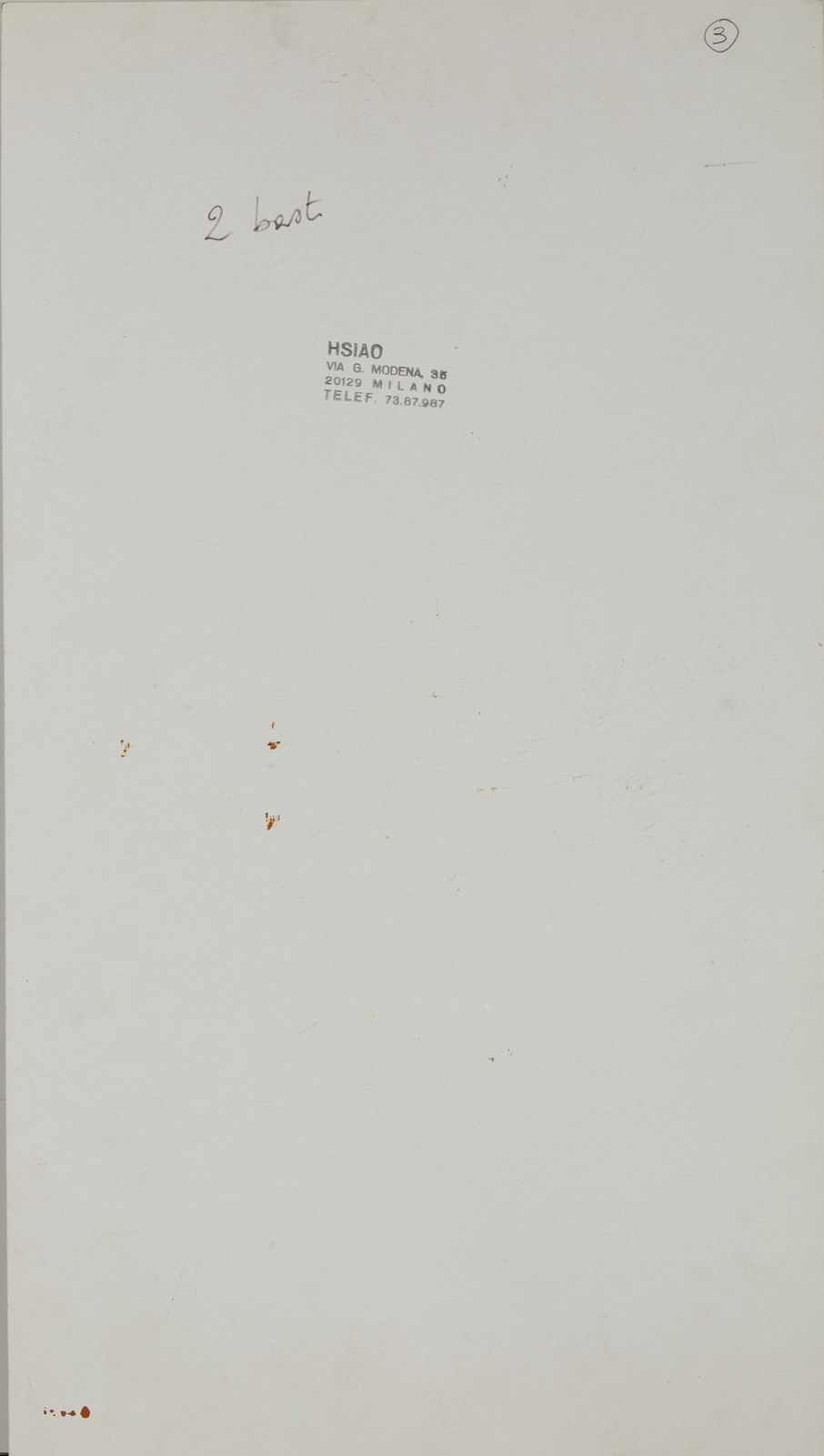 sul retro: titolo e timbro dell'artistaStudio preparatorio di libera interpretazione per il Gioco delle carte Piacentine 40 + 1 +3editore: Pari Editori & Dispari, 1972stampa: F. Cioppia cura di: R. Chiessi, C. Costa, M. Ferrariretro delle carte: G. Alviani.fiches: G. Bizzarri.PROVENIENZACollezione privata, BergamoESPOSIZIONI XXXVI Biennale di Venezia, 1972Musei Civici, Pari & Dispari. 50 anni di ricerca, Reggio Emilia, 2014MaMbo - Museo d'arte moderna di Bologna, Rosanna Chiessi. Pari&Dispari, Bologna 25 maggio – 16 settembre 2018BIBLIOGRAFIA DI RIFERIMETODomus, Gennaio 1973SITOGRAFIA DI RIFERIMETOhttps://www.pariedispari.org/news/4013-gioco-delle-carte-piacentine-con-libera-interpretazione-di-44-artisti