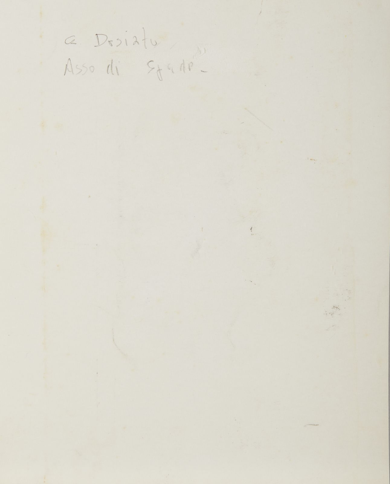 sul retro: firma e titolodimensione opera su carta velina: 10,5 x 6 cmStudio preparatorio di libera interpretazione per il Gioco delle carte Piacentine 40 + 1 +3editore: Pari Editori & Dispari, 1972stampa: F. Cioppia cura di: R. Chiessi, C. Costa, M. Ferrariretro delle carte: G. Alviani.fiches: G. Bizzarri.PROVENIENZACollezione privata, BergamoESPOSIZIONI XXXVI Biennale di Venezia, 1972Musei Civici, Pari & Dispari. 50 anni di ricerca, Reggio Emilia, 2014MaMbo - Museo d'arte moderna di Bologna, Rosanna Chiessi. Pari&Dispari, Bologna 25 maggio – 16 settembre 2018BIBLIOGRAFIA DI RIFERIMETODomus, Gennaio 1973SITOGRAFIA DI RIFERIMETOhttps://www.pariedispari.org/news/4013-gioco-delle-carte-piacentine-con-libera-interpretazione-di-44-artisti