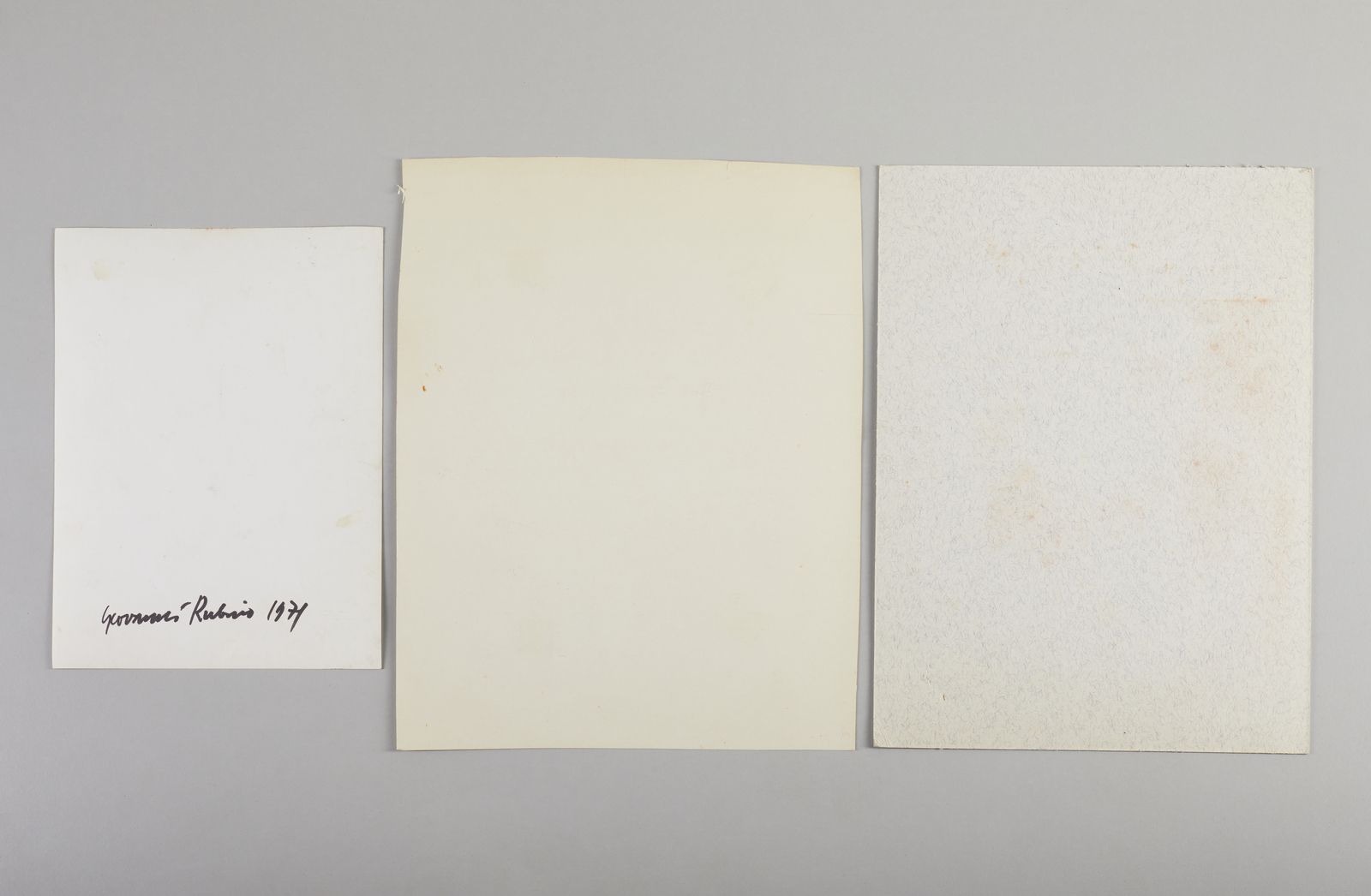 Il lotto è composto da tre sudi preparatori.- 24x18 cm, collage su stampa. sul retro: firma e data- 32x25 cm, stampa ritoccata a mano e applicata su cartoncino- 32x23,5 cm, stampa su carta applicata su cartoncinoStudio preparatorio di libera interpretazione per il Gioco delle carte Piacentine 40 + 1 +3editore: Pari Editori & Dispari, 1972stampa: F. Cioppia cura di: R. Chiessi, C. Costa, M. Ferrariretro delle carte: G. Alviani.fiches: G. Bizzarri.PROVENIENZACollezione privata, BergamoSITOGRAFIA DI RIFERIMETOhttps://www.pariedispari.org/news/4013-gioco-delle-carte-piacentine-con-libera-interpretazione-di-44-artisti