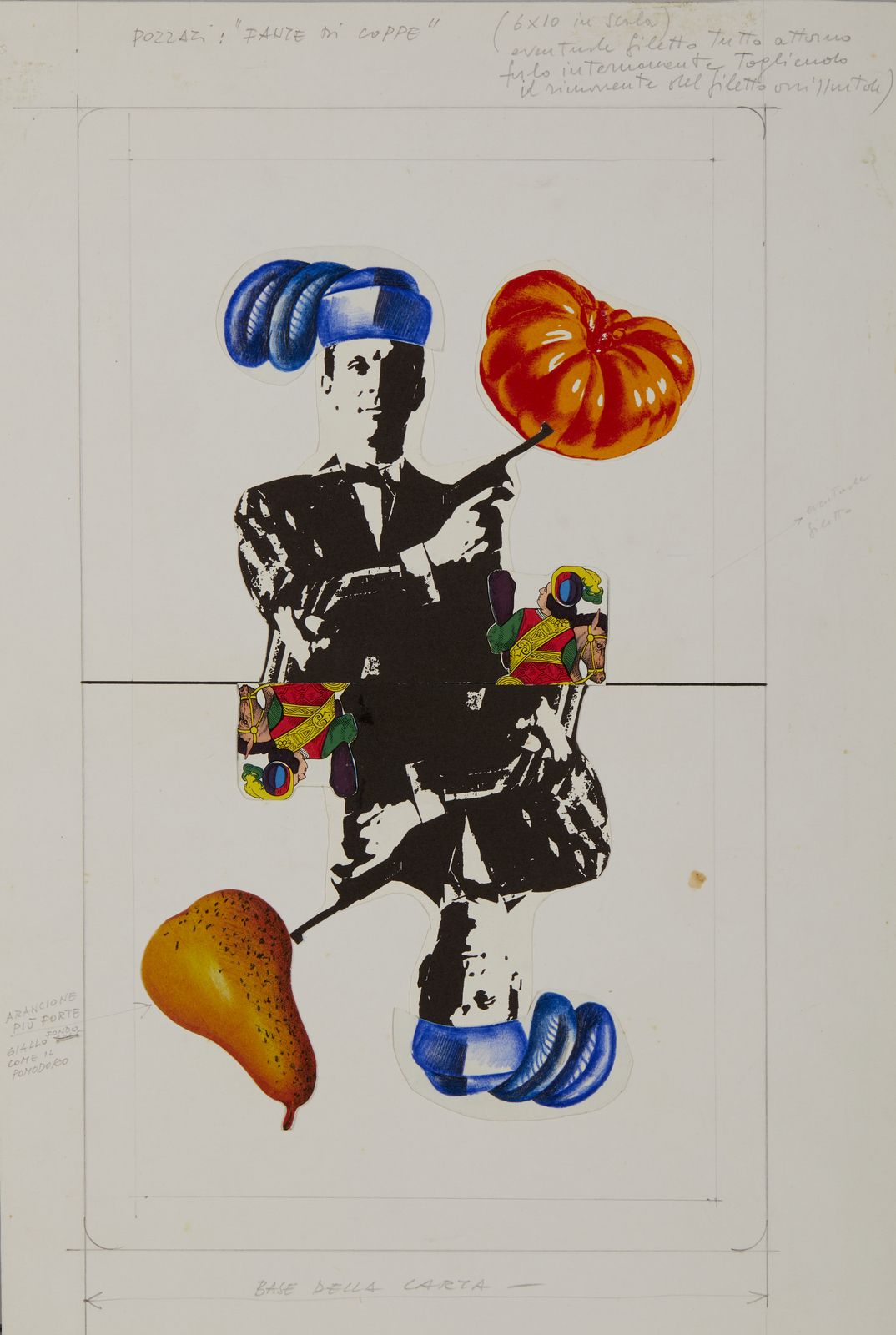 firma, titolo e indicazioni per lo stampatoreStudio preparatorio di libera interpretazione per il Gioco delle carte Piacentine 40 + 1 +3editore: Pari Editori & Dispari, 1972stampa: F. Cioppia cura di: R. Chiessi, C. Costa, M. Ferrariretro delle carte: G. Alviani.fiches: G. Bizzarri.PROVENIENZACollezione privata, BergamoESPOSIZIONI XXXVI Biennale di Venezia, 1972Musei Civici, Pari & Dispari. 50 anni di ricerca, Reggio Emilia, 2014MaMbo - Museo d'arte moderna di Bologna, Rosanna Chiessi. Pari&Dispari, Bologna 25 maggio – 16 settembre 2018BIBLIOGRAFIA DI RIFERIMETODomus, Gennaio 1973SITOGRAFIA DI RIFERIMETOhttps://www.pariedispari.org/news/4013-gioco-delle-carte-piacentine-con-libera-interpretazione-di-44-artisti