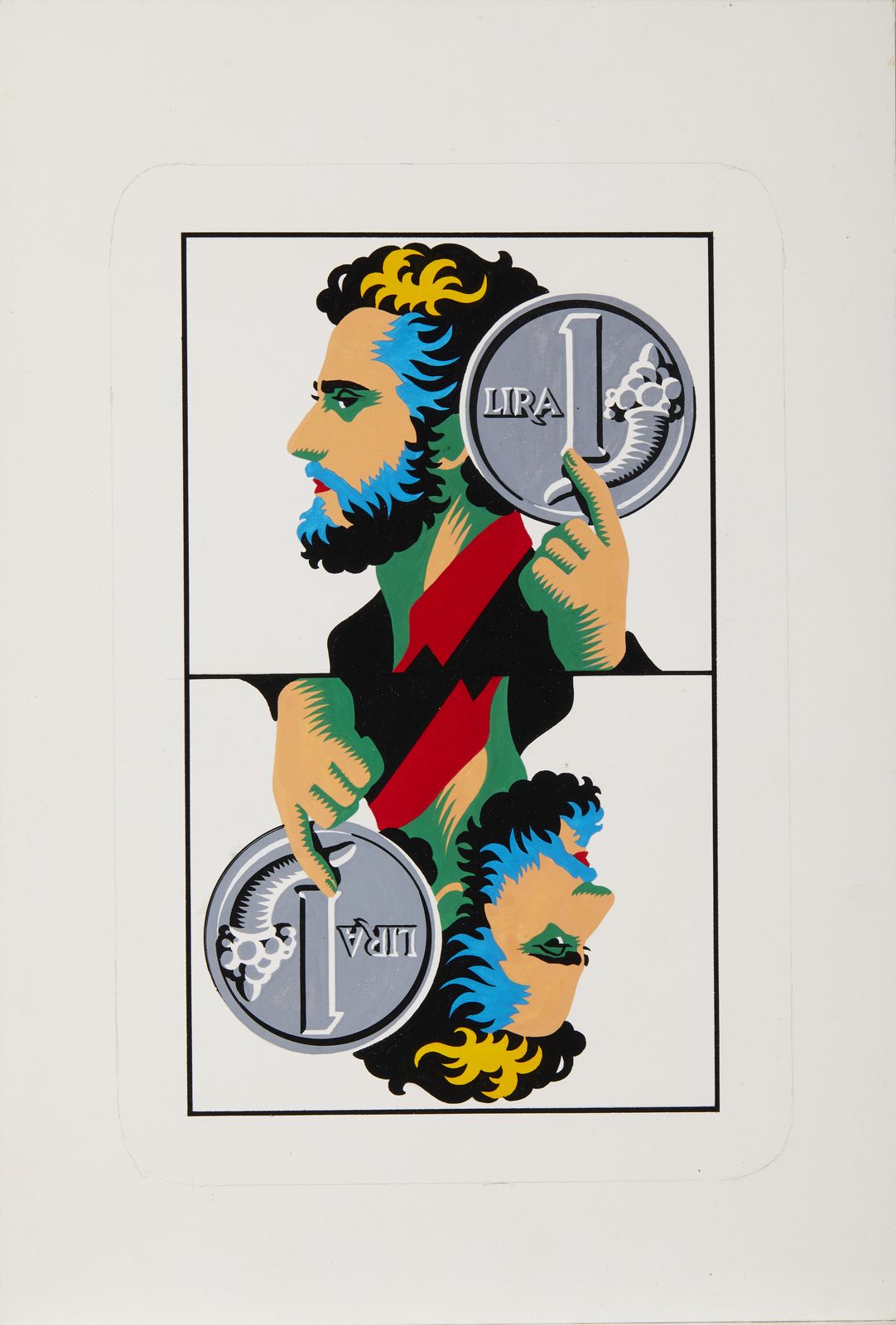 sul retro: etichetta dell'artista e iscrizioneStudio preparatorio di libera interpretazione per il Gioco delle carte Piacentine 40 + 1 +3editore: Pari Editori & Dispari, 1972stampa: F. Cioppia cura di: R. Chiessi, C. Costa, M. Ferrariretro delle carte: G. Alviani.fiches: G. Bizzarri.PROVENIENZACollezione privata, BergamoESPOSIZIONI XXXVI Biennale di Venezia, 1972Musei Civici, Pari & Dispari. 50 anni di ricerca, Reggio Emilia, 2014MaMbo - Museo d'arte moderna di Bologna, Rosanna Chiessi. Pari&Dispari, Bologna 25 maggio – 16 settembre 2018BIBLIOGRAFIA DI RIFERIMETODomus, Gennaio 1973SITOGRAFIA DI RIFERIMETOhttps://www.pariedispari.org/news/4013-gioco-delle-carte-piacentine-con-libera-interpretazione-di-44-artisti