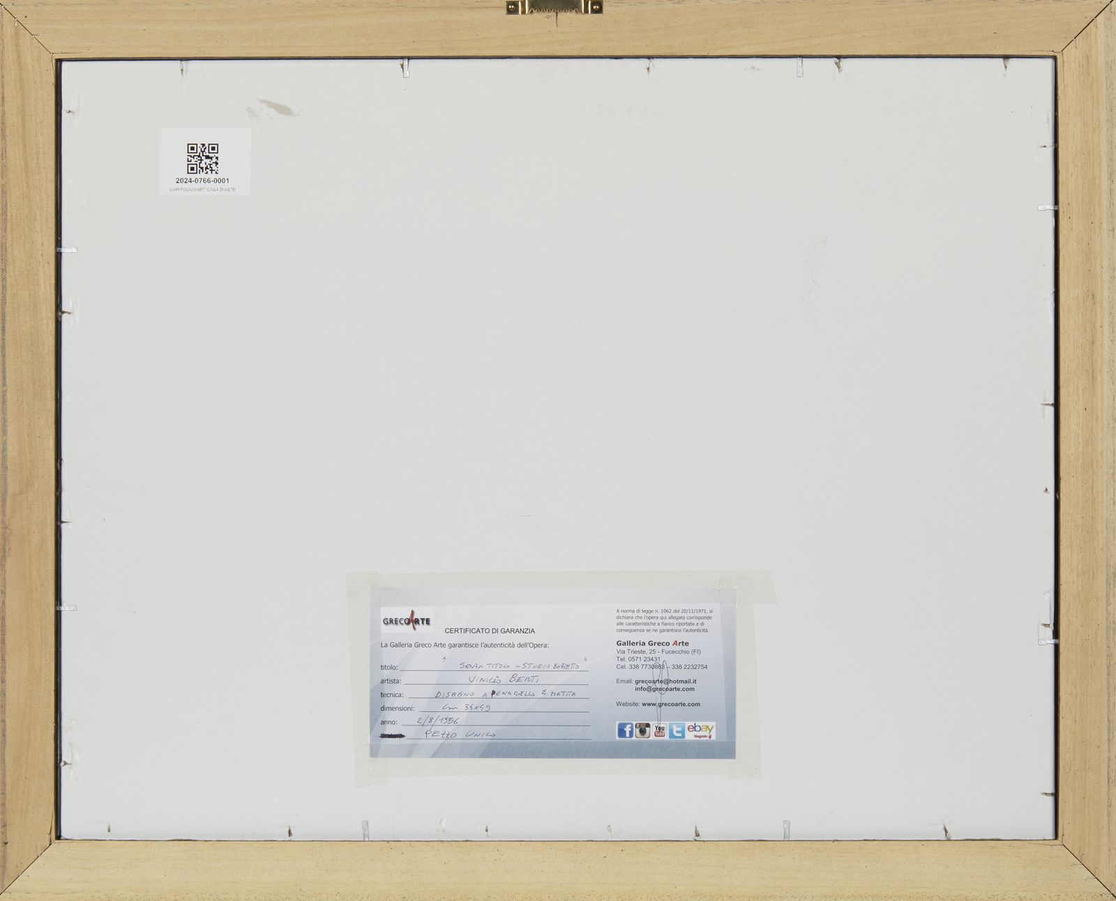 firma, data, titolo, 2/6sul retro: etichetta Greco Arte, FucecchioL'opera è accompagnata da certificato del Centro Studi Arte, Archivio Vinicio Berti, BolognaPROVENIENZAAurelio Stefanini, FirenzeGreco Arte, Fucecchio