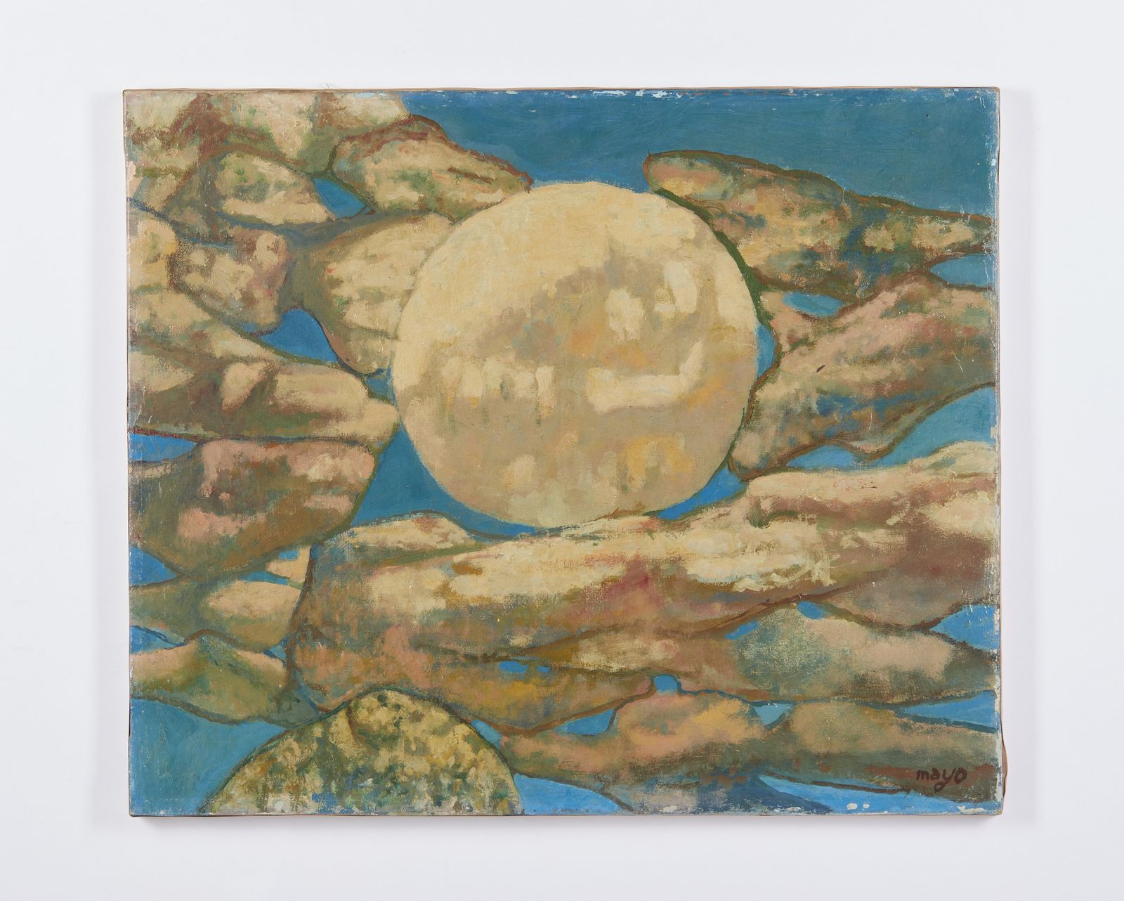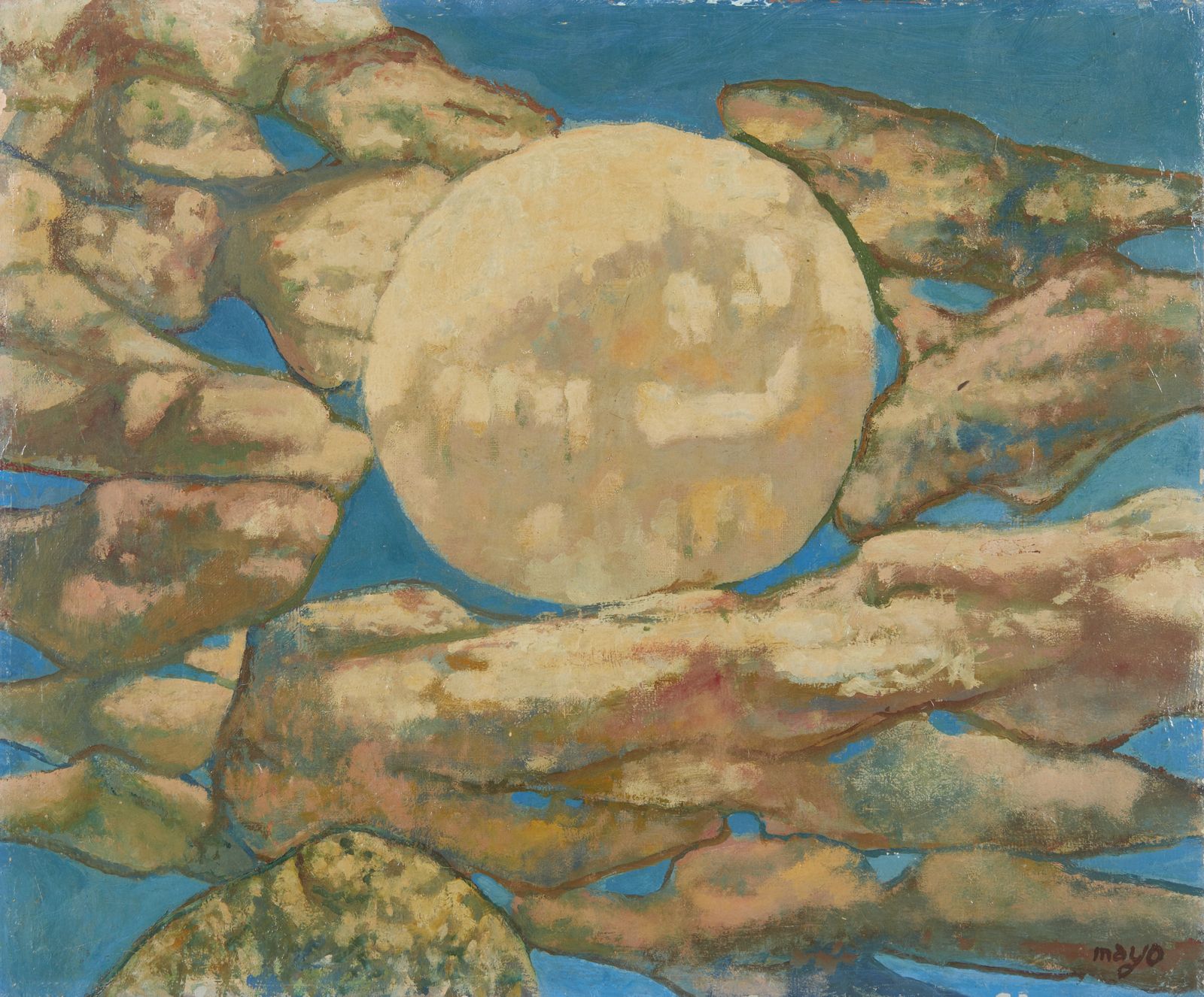 firma ?sul retro: firma, data e titoloPROVENIENZA?Lucilla Mussini-Bombieri, (moglie dell’artista)ESPOSIZIONI?Galerie Le Point, Monte-Carlo 18 dicembre 1995-31 gennaio 1996?BIBLIOGRAFIA?C. Vivaldi, Mayo, Milano 1968, p. 60, n. 30 (con il titolo Tendre amie)?Mayo. Peintures années 1960.1980, Monte-Carlo 1995, n. 4??'Nel mondo di Mayo, il visitatore è ammesso alla conoscenza del significato nascosto delle cose, le gerarchie sono abolite, le antinomie sono risolte, nulla separa il sasso dalla nuvola, il corpo umano dal nodo nel cuore della quercia, l'occhio dalla goccia d'acqua.' (Patrick Waldberg, 1970)
