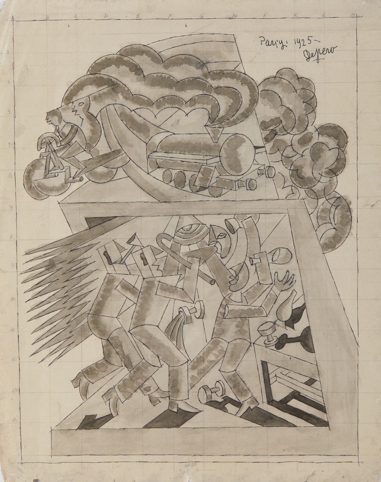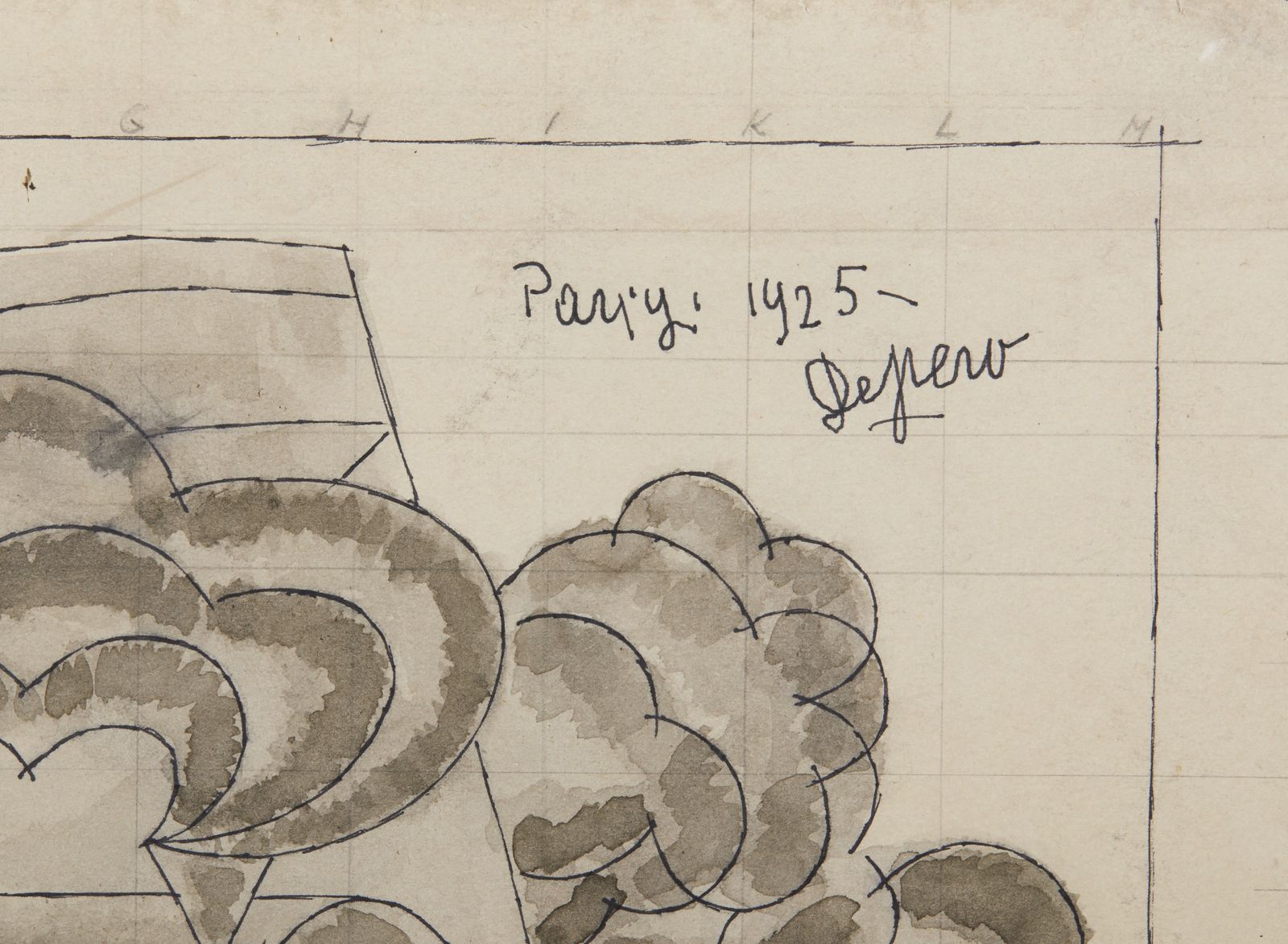 firma e dataL'opera è accompagnata da certificato dell' Archivio delle opere futuriste di Fortunato Depero, a cura di Maurizio ScudieroStudio finale per il dipinto 'Les buveurs et la locomotive' nel quale si notano sui lati sinistro e superiore, le caselline usate per l'ingrandimento del cartone finale per lo spolvero.PROVENIENZACollezione privata, Rovereto
