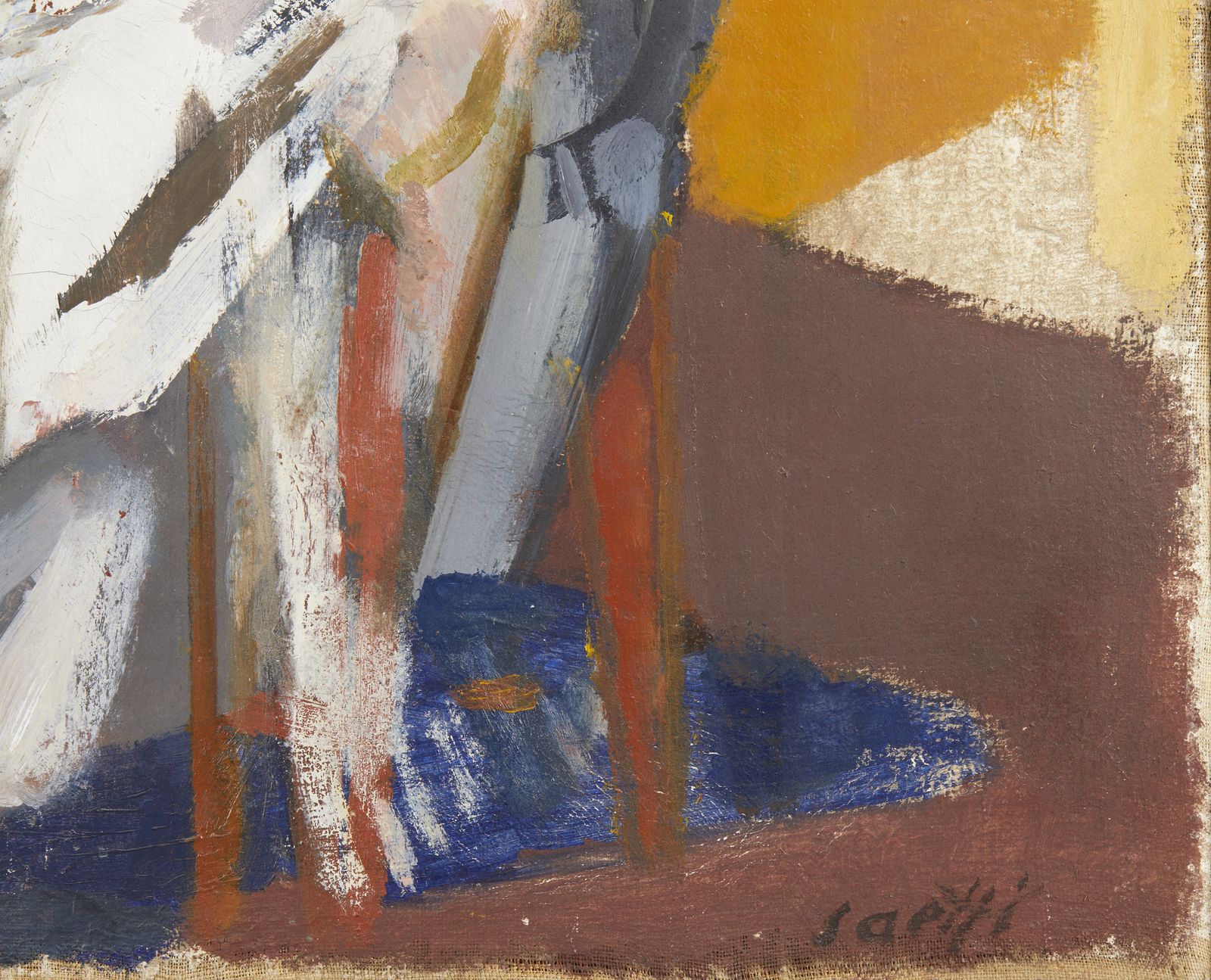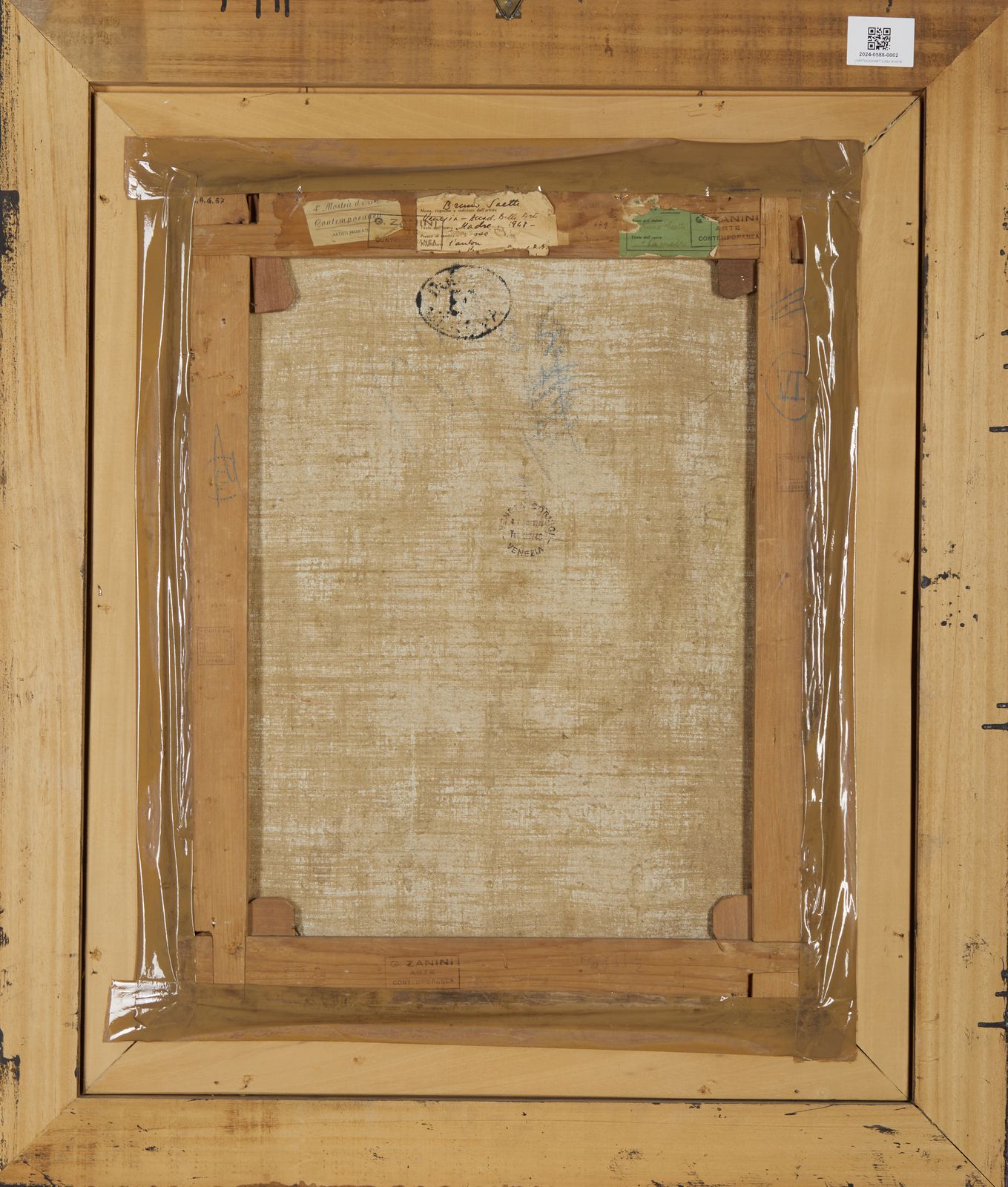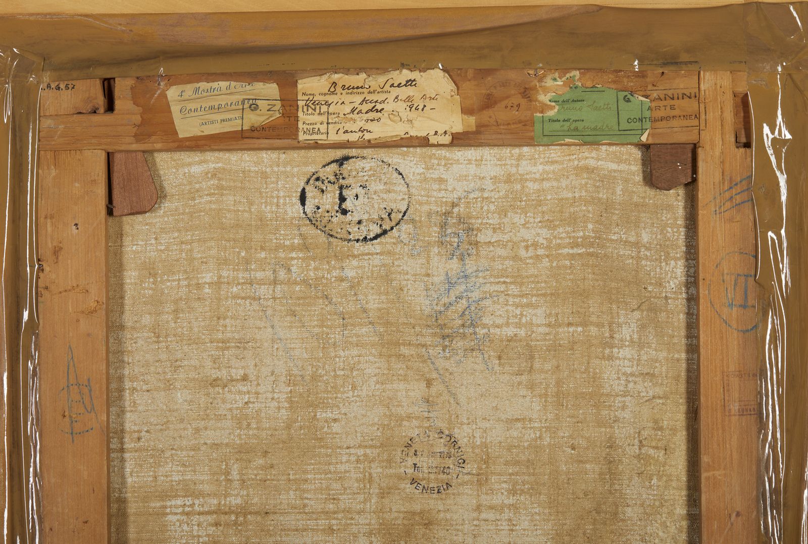 firmasul retro: timbri Galleria Zanini, Roma, etichetta e timbro Galleria del Naviglio, Milano. etichetta 4° Mostra arte contemporaneaL'opera è accompagnata da autentica dell'artista su fotografiaBIBLIOGRAFIACatalogo generale dell'opera di Bruno Saetti, Volume II, Editore Castaldi 1996, Feltre