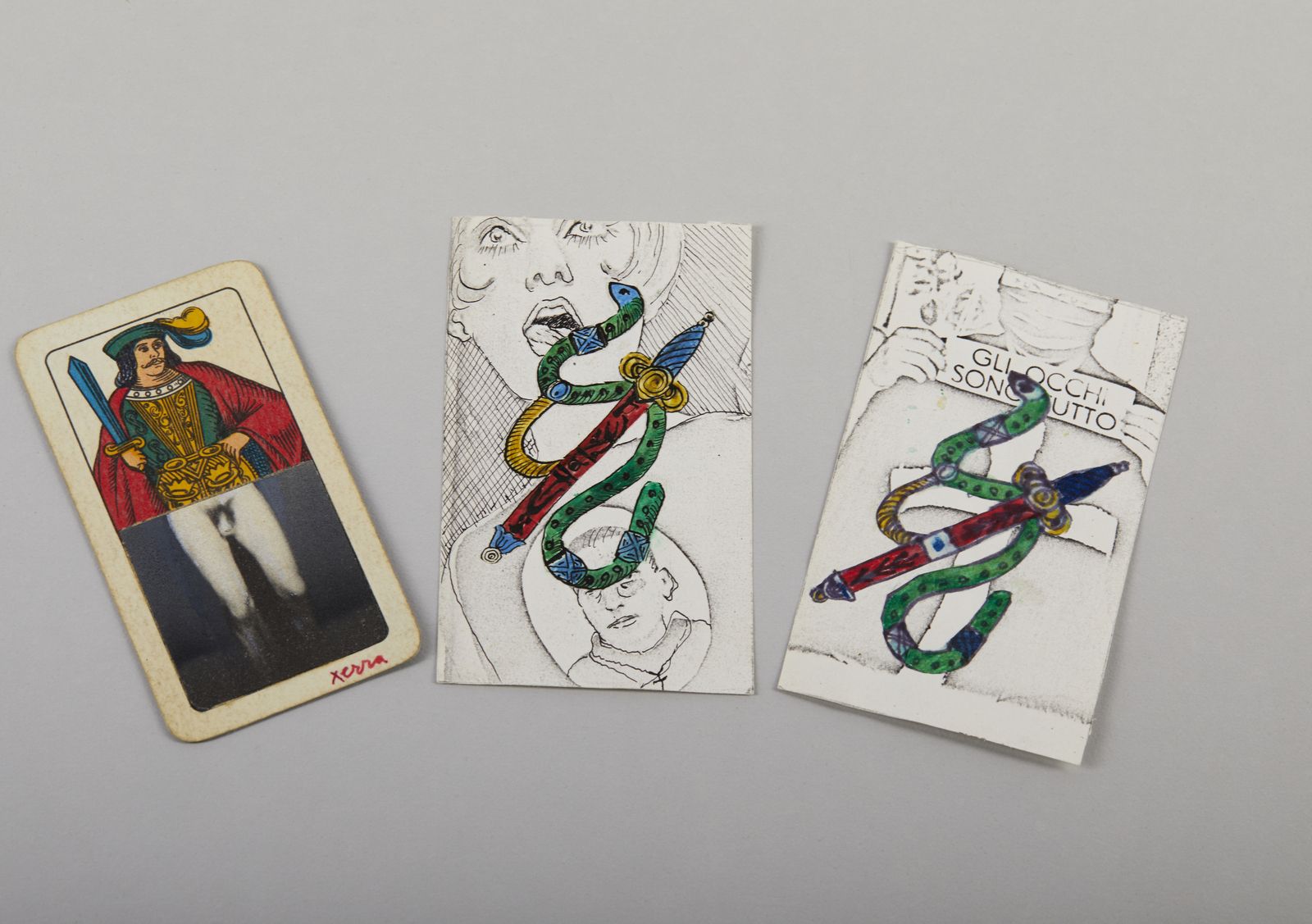 firmasul retro: iscrizioni dell'artista dimensione opera senza passe partout: 24 x 13,5 cmStudio preparatorio di libera interpretazione per il Gioco delle carte Piacentine 40 + 1 +3editore: Pari Editori & Dispari, 1972stampa: F. Cioppia cura di: R. Chiessi, C. Costa, M. Ferrariretro delle carte: G. Alviani.fiches: G. Bizzarri.PROVENIENZACollezione privata, BergamoESPOSIZIONI XXXVI Biennale di Venezia, 1972Musei Civici, Pari & Dispari. 50 anni di ricerca, Reggio Emilia, 2014MaMbo - Museo d'arte moderna di Bologna, Rosanna Chiessi. Pari&Dispari, Bologna 25 maggio – 16 settembre 2018BIBLIOGRAFIA DI RIFERIMETODomus, Gennaio 1973SITOGRAFIA DI RIFERIMETOhttps://www.pariedispari.org/news/4013-gioco-delle-carte-piacentine-con-libera-interpretazione-di-44-artisti