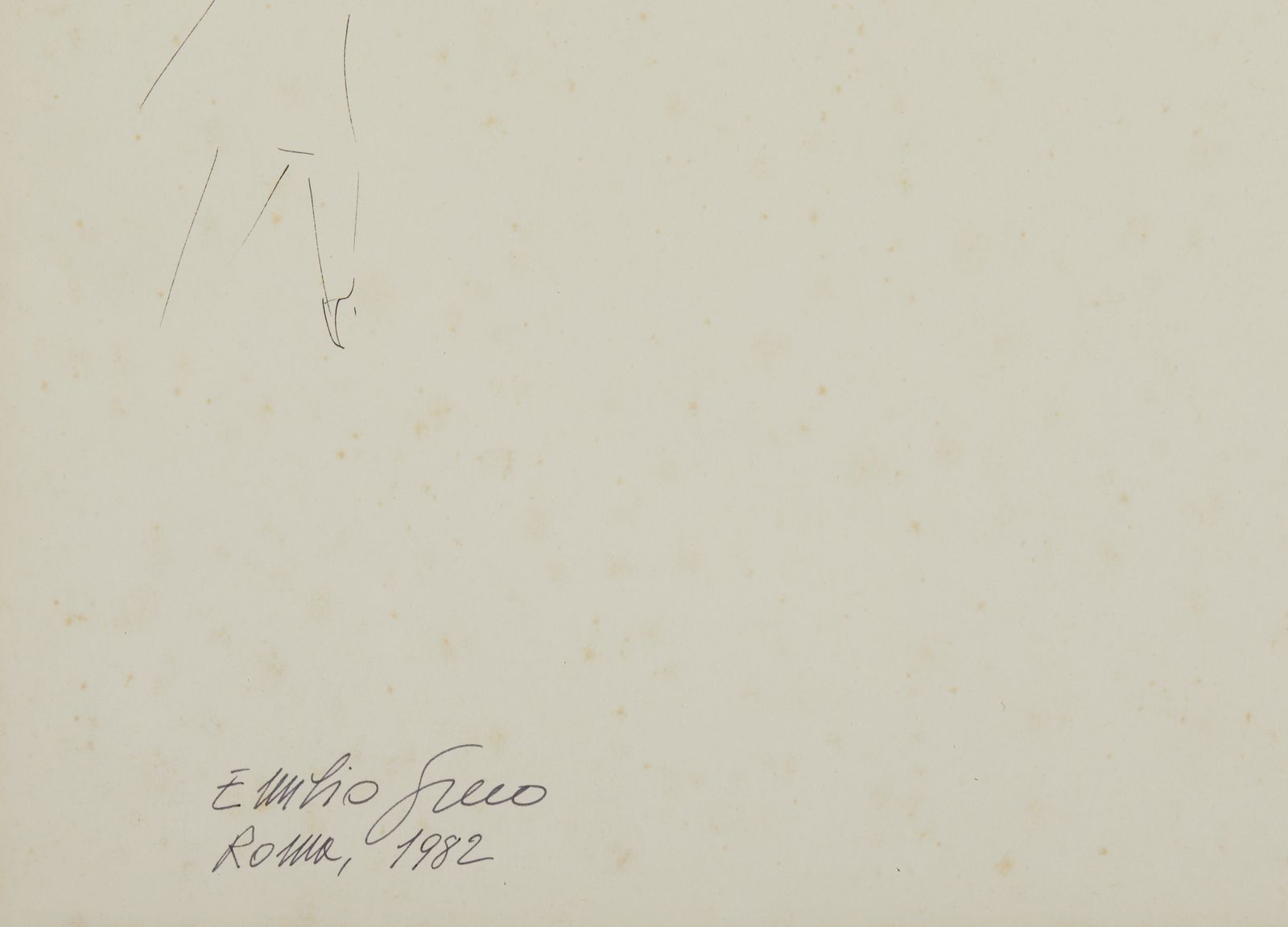 firma e dataL'opera è accompagnata da autentica dell'artista su fotografiaESPOSIZIONIOmaggio a Emilio Greco, disegni e incisioni, Auditorium comunale, Montevarchi 11 ottobre-16 novembre 1997BIBLIOGRAFIAA. e V. Almanni, Omaggio a Emilio Greco, disegni e incisioni, Firenze 1997, p. 19, n. 30