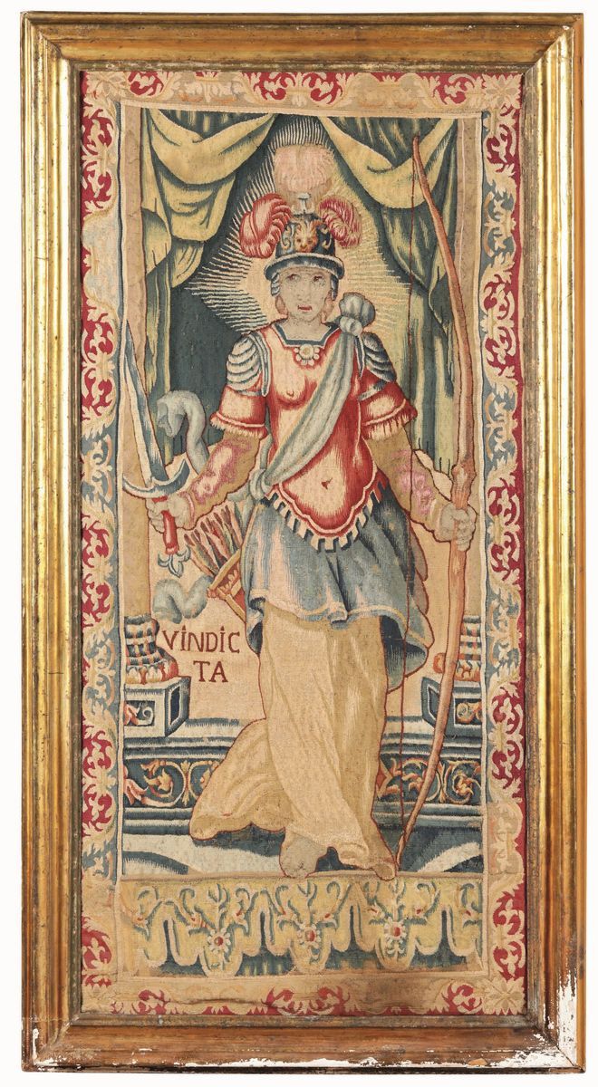 Parti di arazzo rappresentanti La Confidenza e La Vendetta, manifattura del XVIII [..]