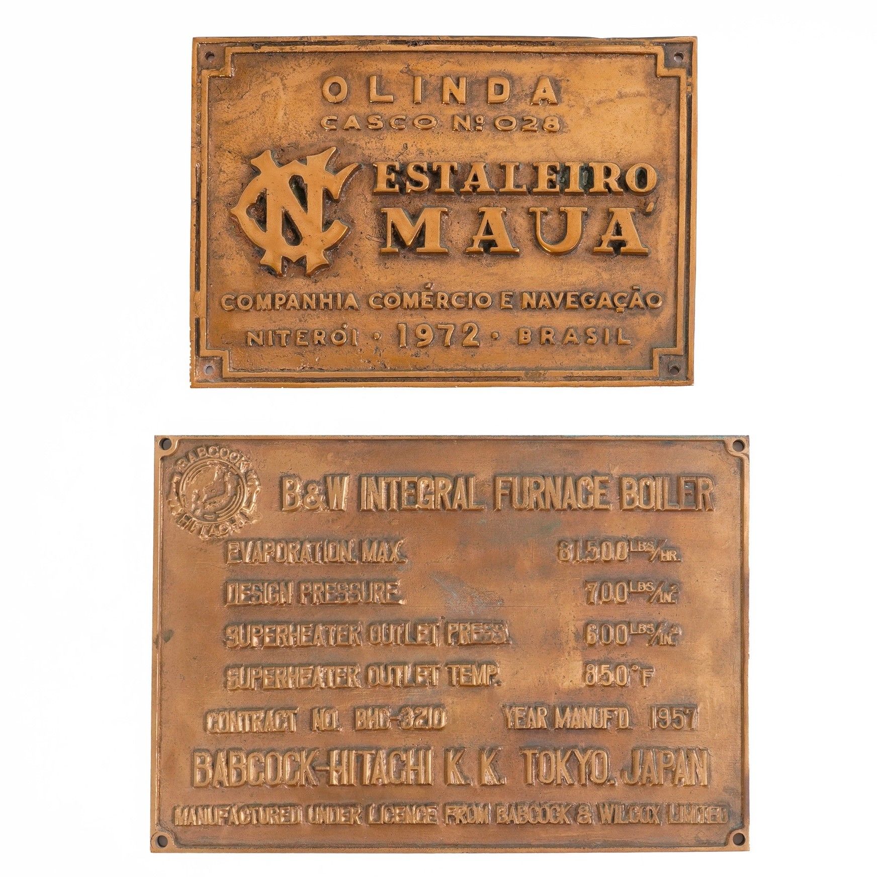 Due grandi placche in metallo della Olinda casco n.028 e Babcook-Hitachi