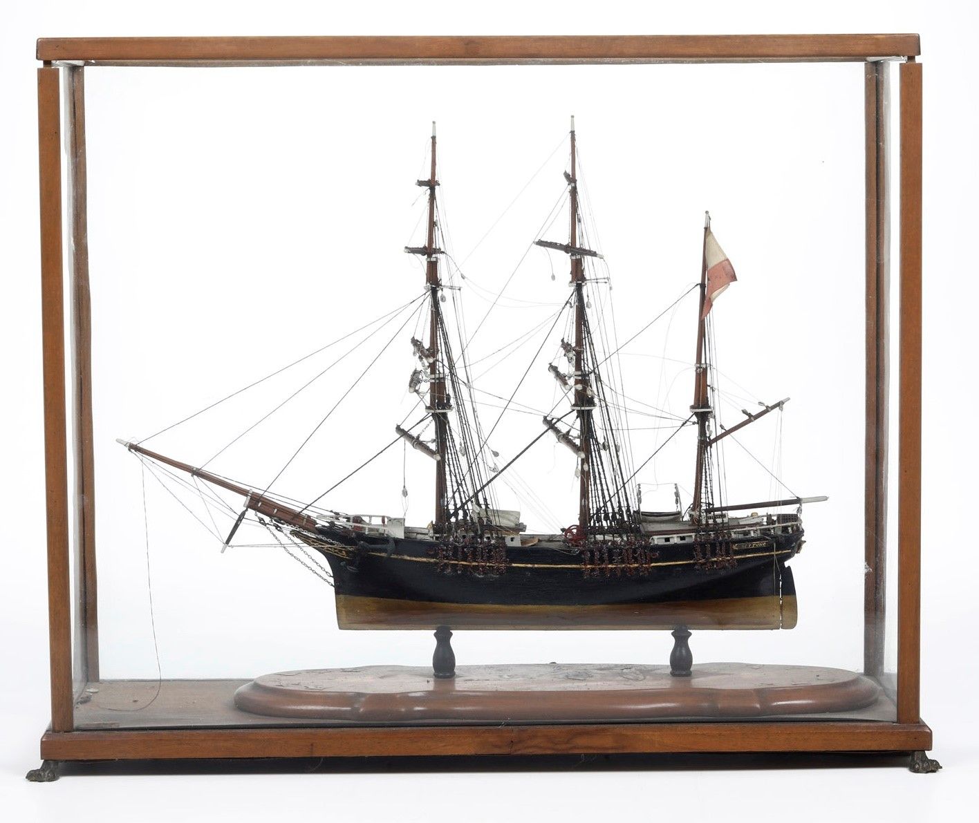 Modello di veliero a tre alberi, in teca. Italia XX secolo