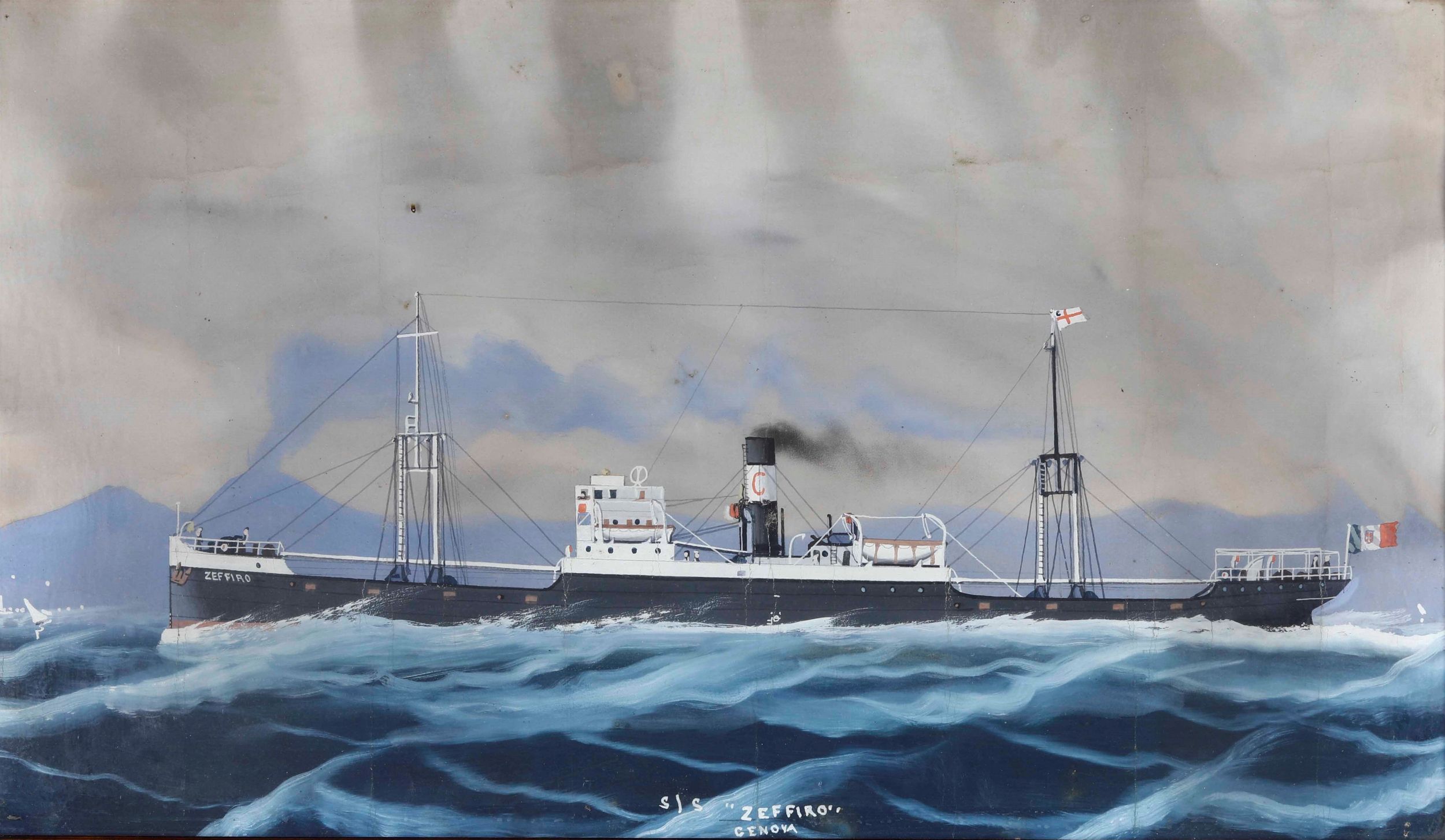 Pittore del XIX-XX secolo Ritratto della S.S. Zeffiro Genova in navigazione davanti [..]