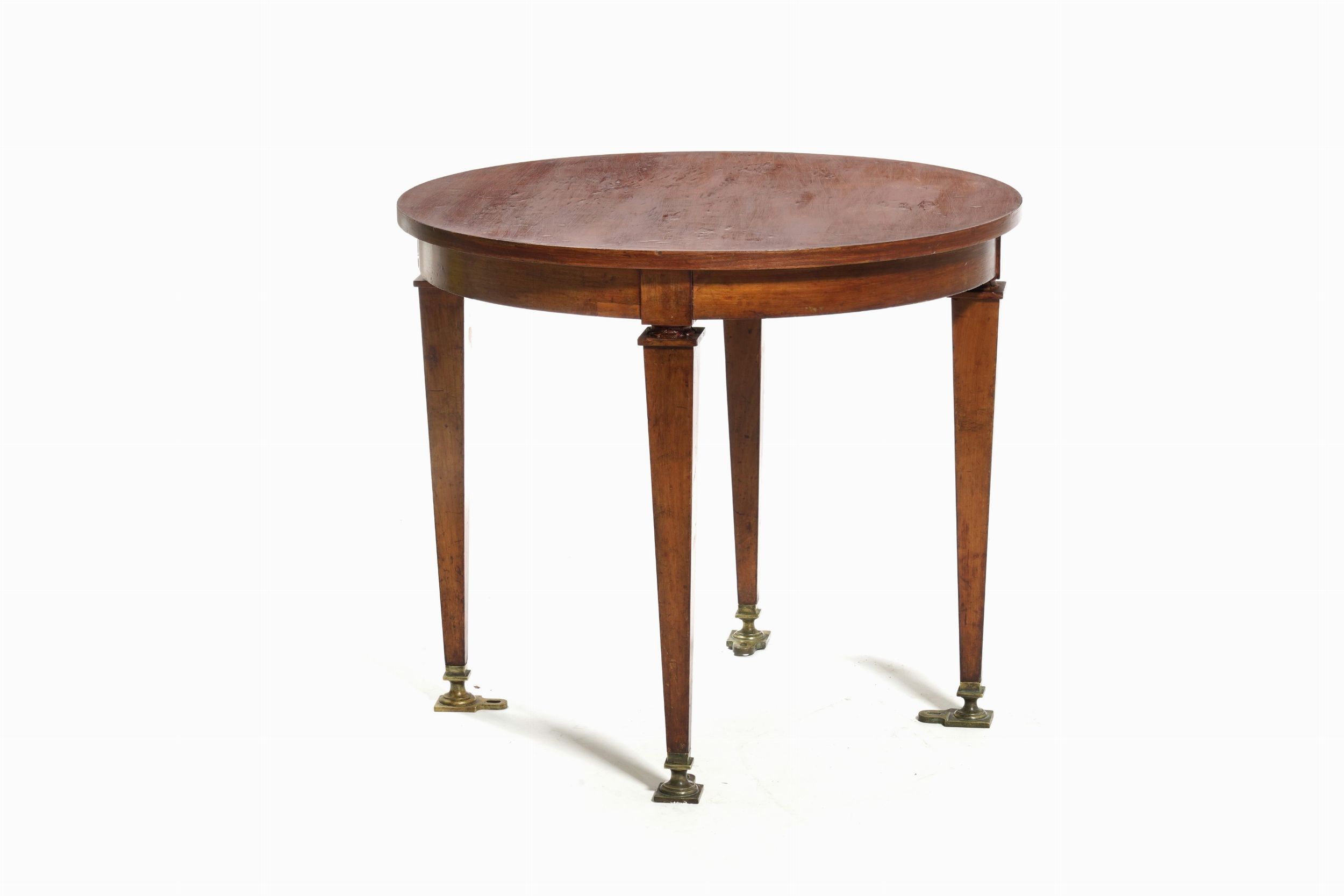 Tavolo tondo da bordo con piedini in ottone. Italia XX secolo