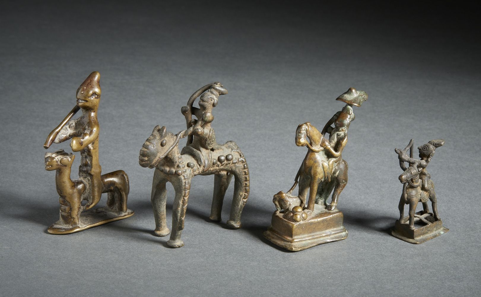 4 figure di cavalieri in bronzo India popolare, XIX secolo