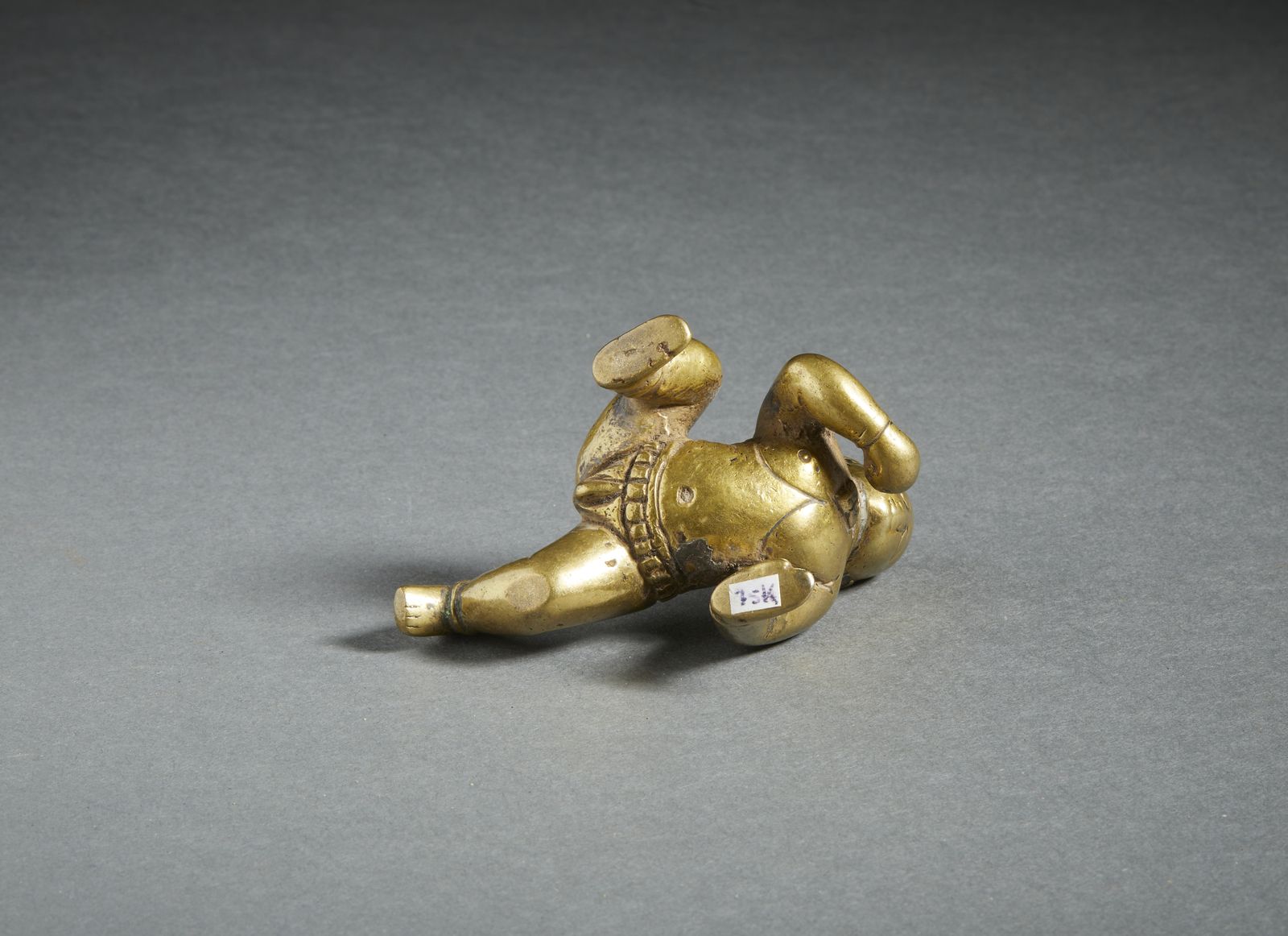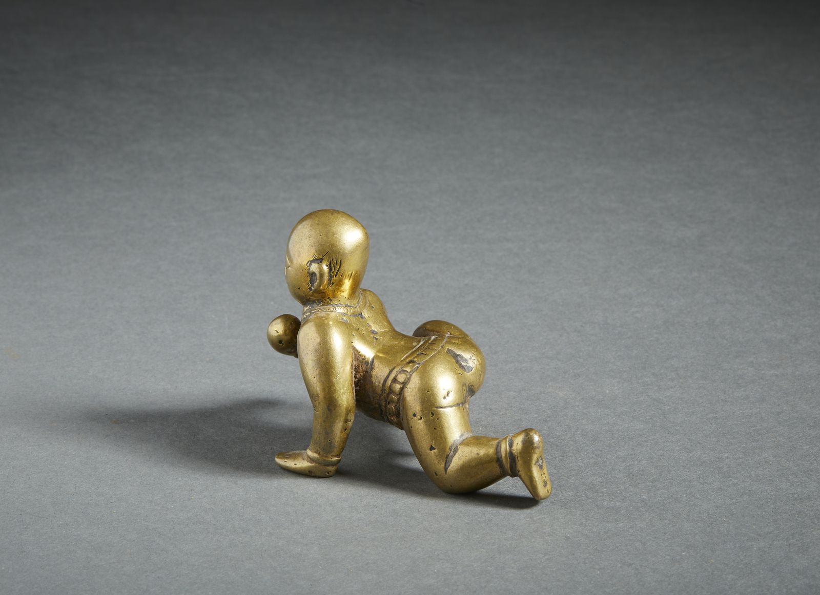 Solida fusione in ottone raffigurante la divinità bambino a carponi con la palla di burro nella sua mano destra. Provenienza: Collezione Berger.