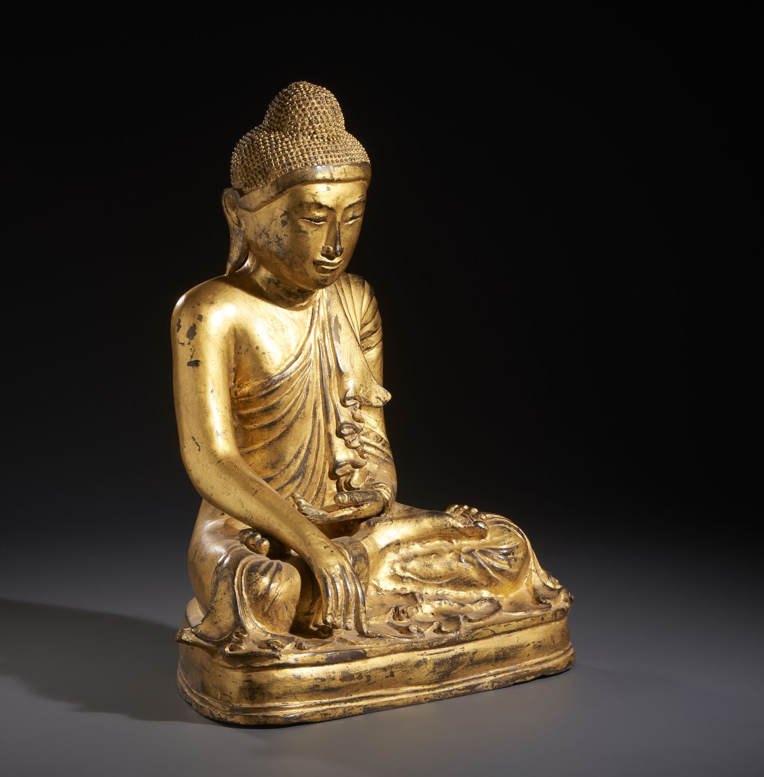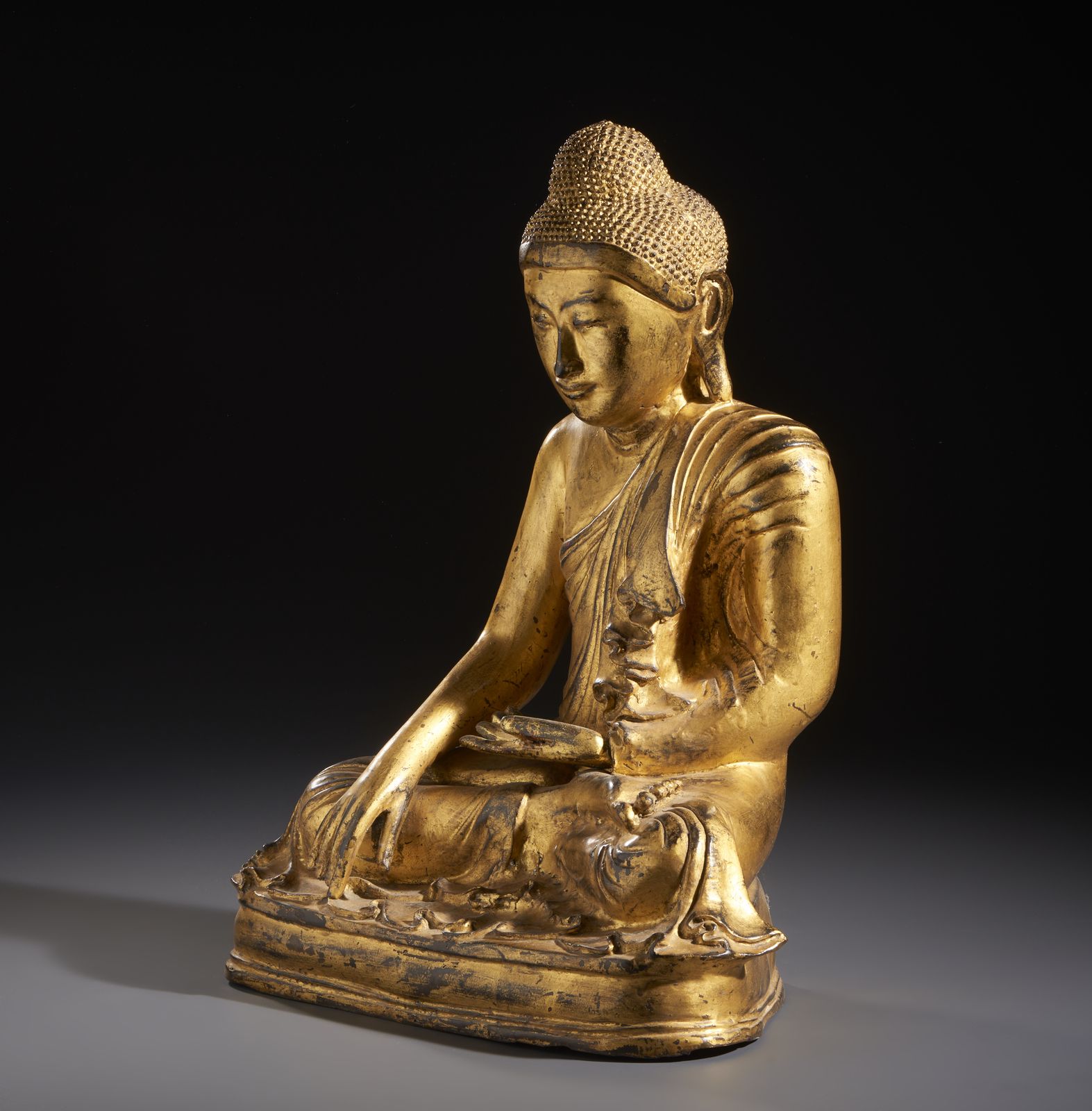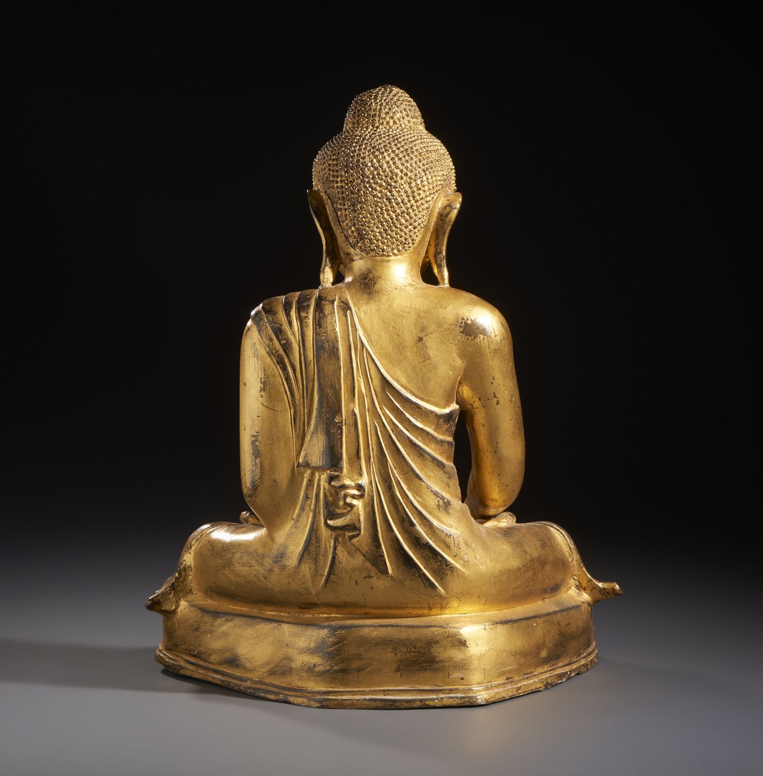 Buddha in bronzo dorato, seduto nella posizione padmasana. Birmania XIX / XX sec