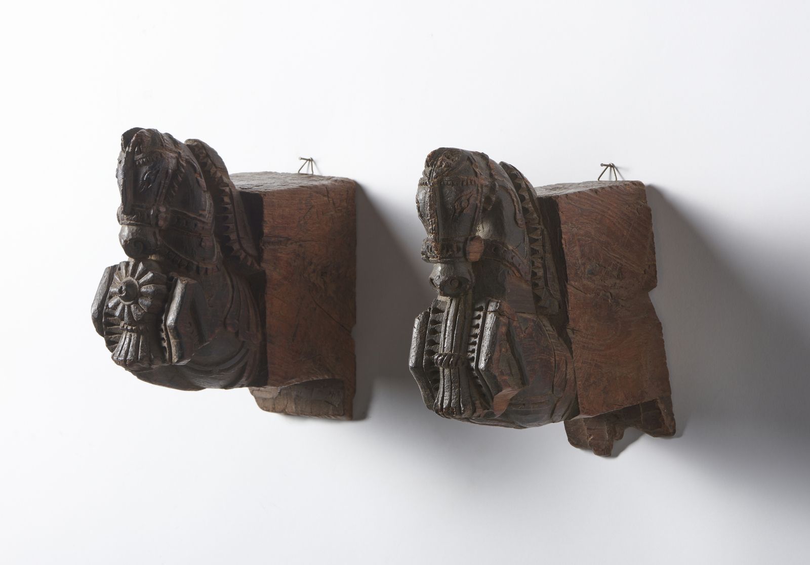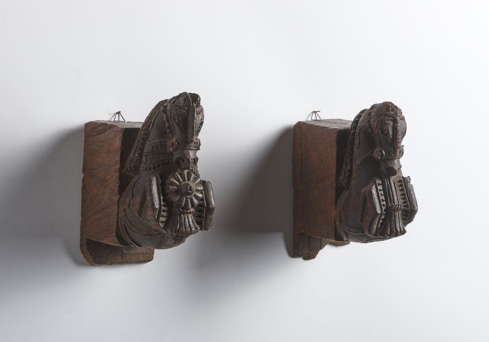 Coppia di cavalli in legno. India, XIX secolo.
