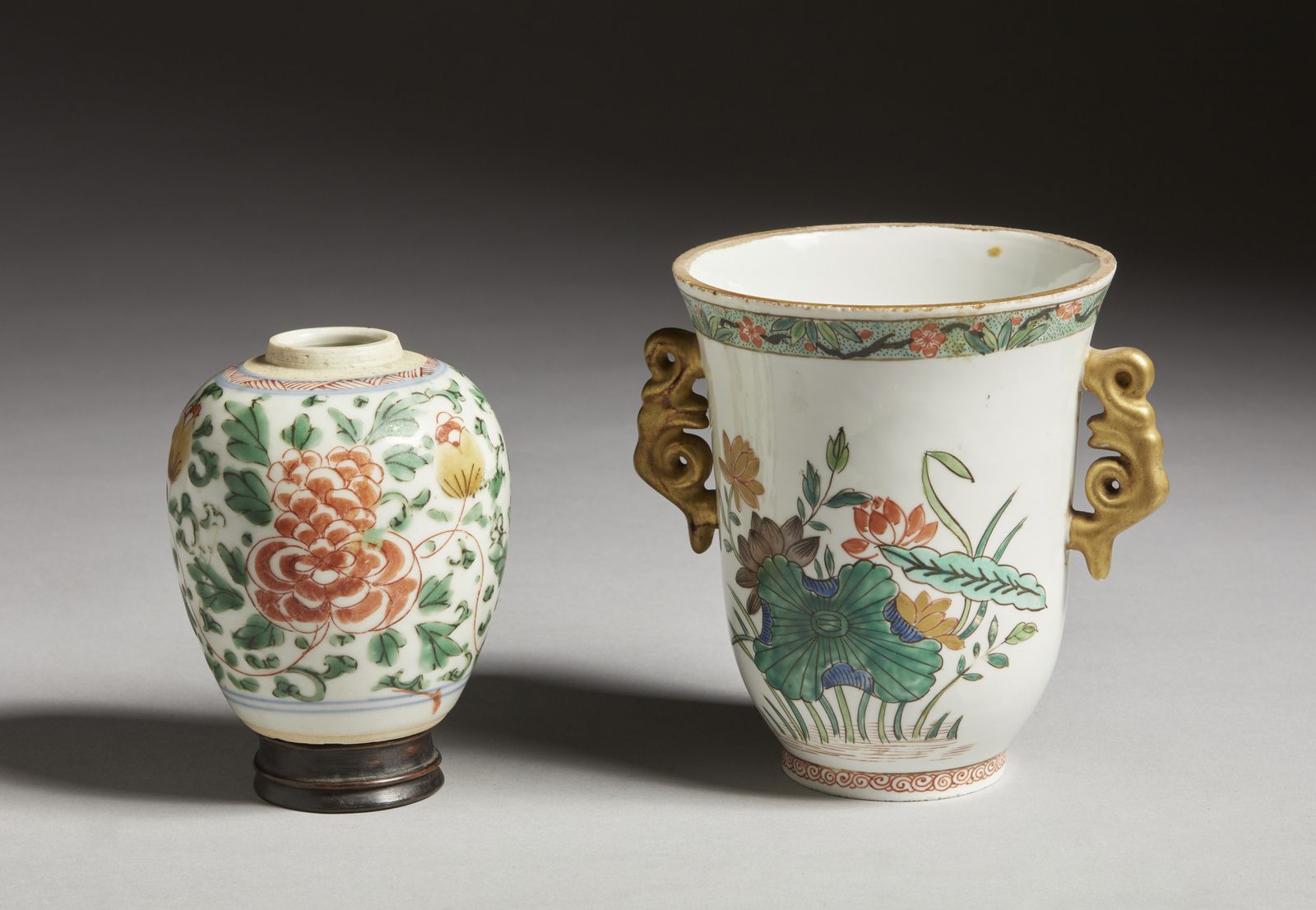 Due contenitori in porcellana famiglia verde Cina, XVII - XVIII secolo