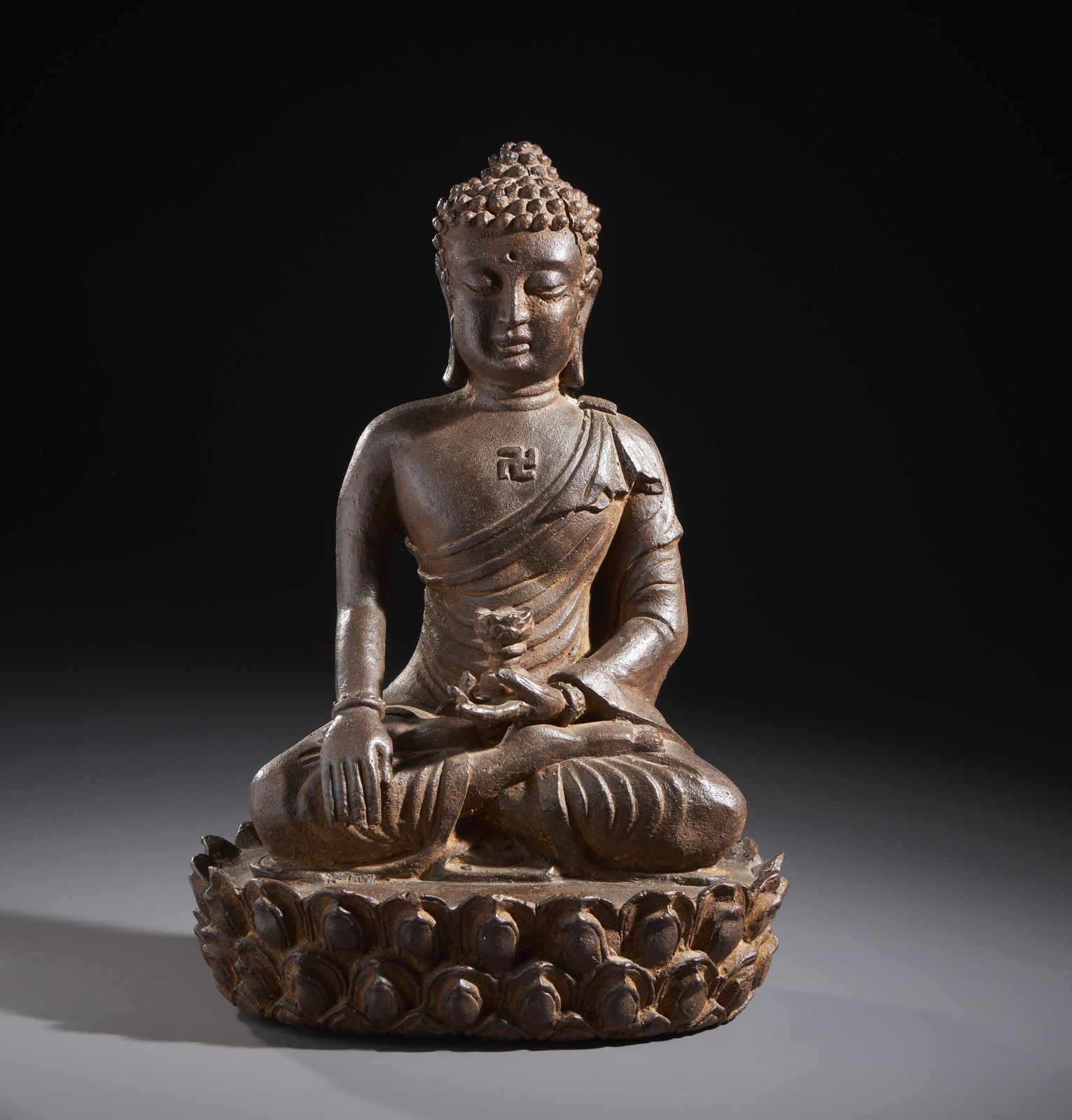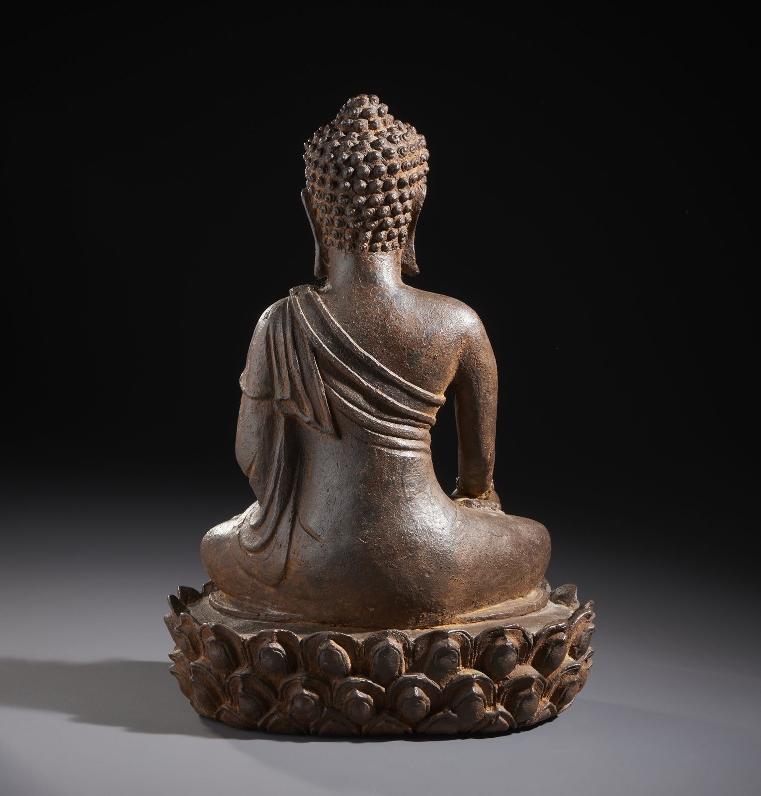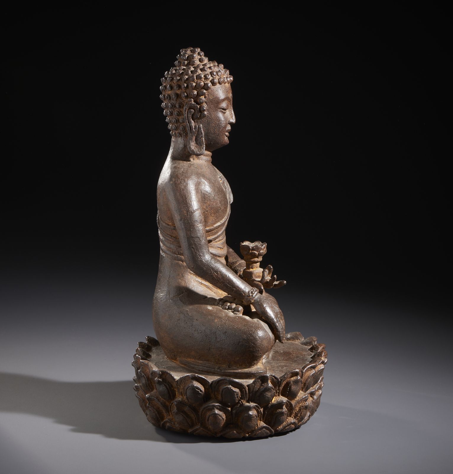 Figura di Buddha in bronzo seduto su fiore di loto.Cina XVIII / XIX sec.