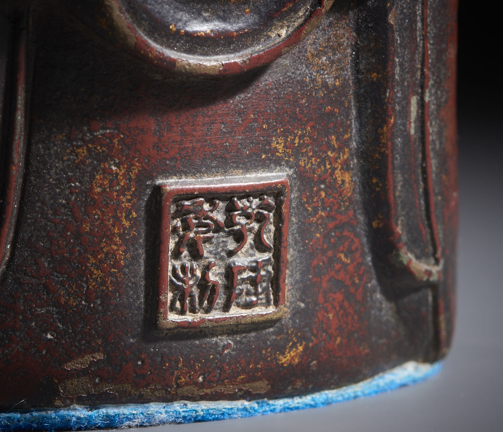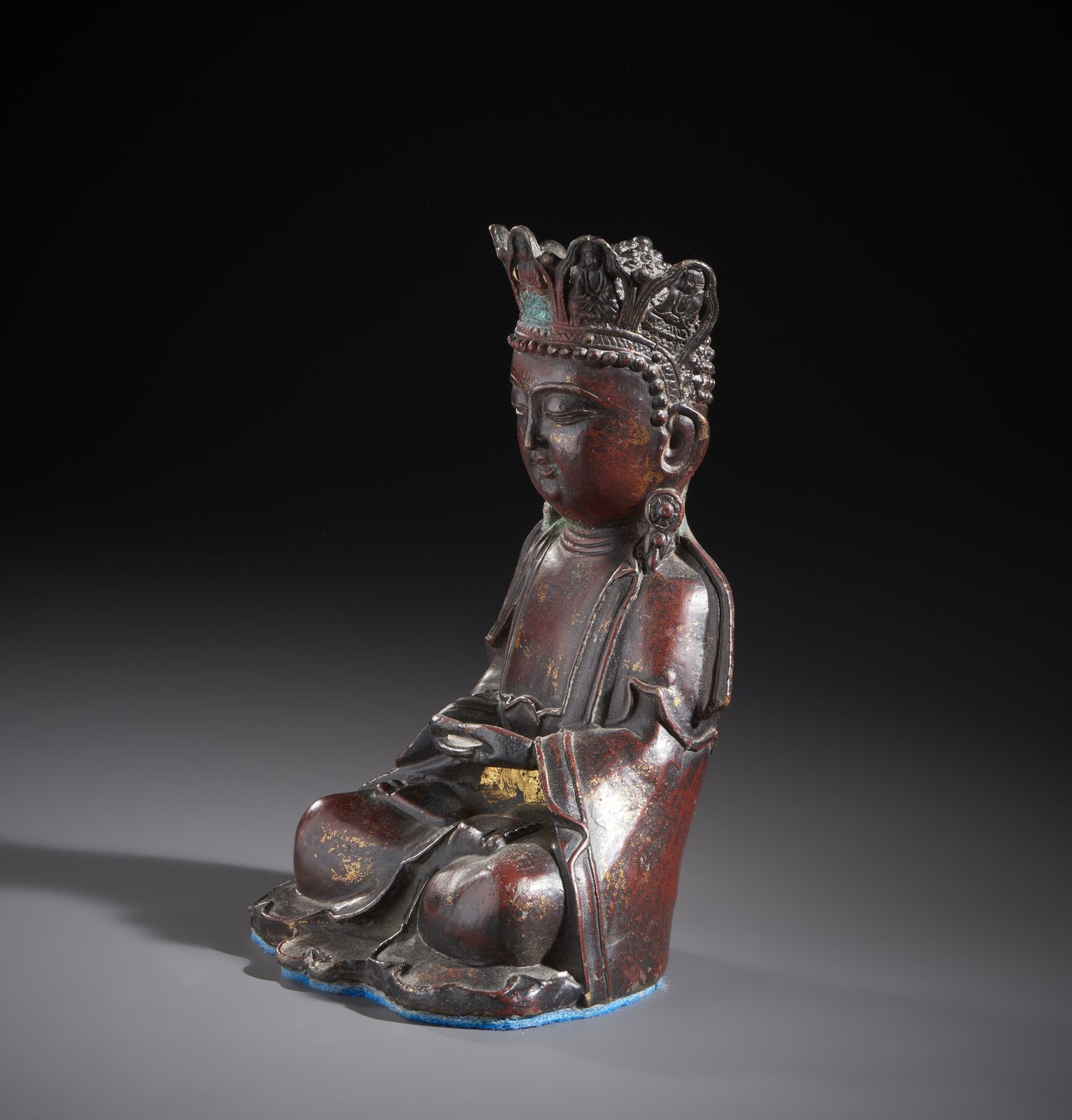 Figura in bronzo dorata e laccata raffigurante Buddha in stile Ming.Cina, XX sec [..]