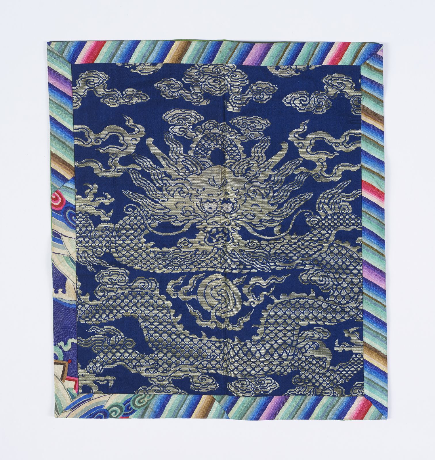 Frammento di tessuto raffigurante drago tra nuvole infuocate e perla fiammeggiante.Cina, [..]