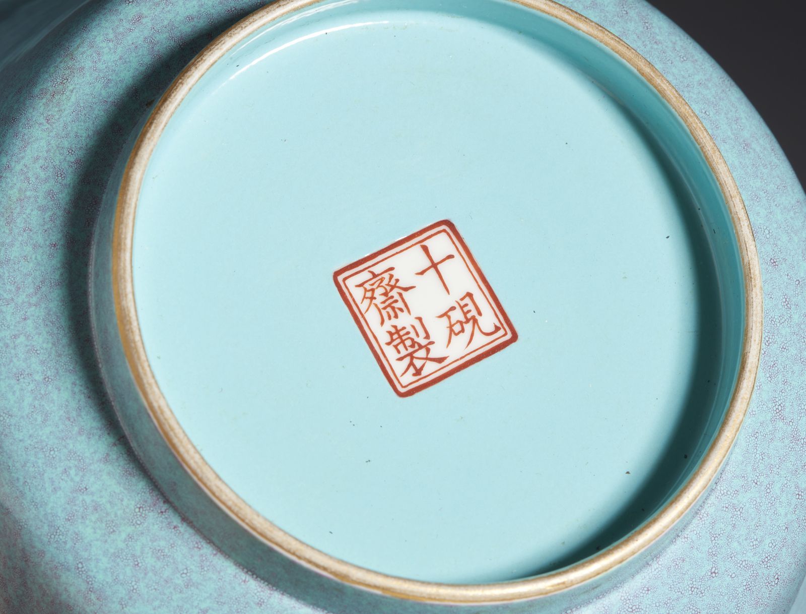 L'interno color turchese bordo dorato. Reca il marchio di sala “ shi yan zhai zhi “.