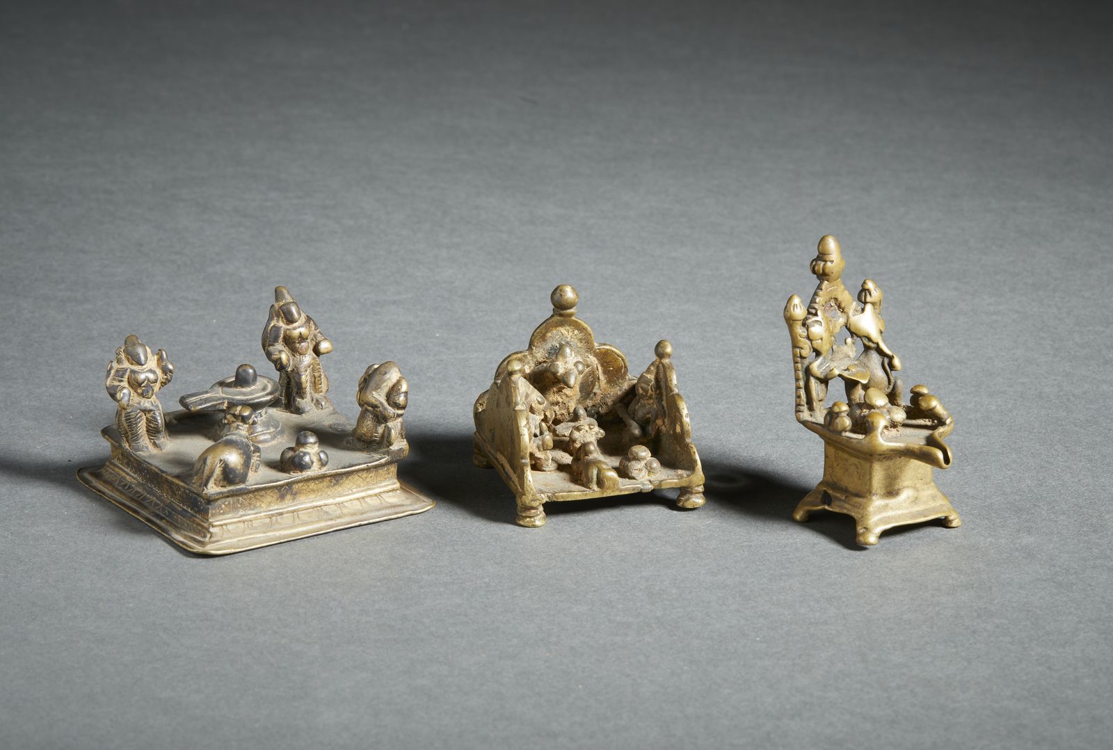 Gruppo di 3 altari Shivalinga in ottone India, XIX secolo