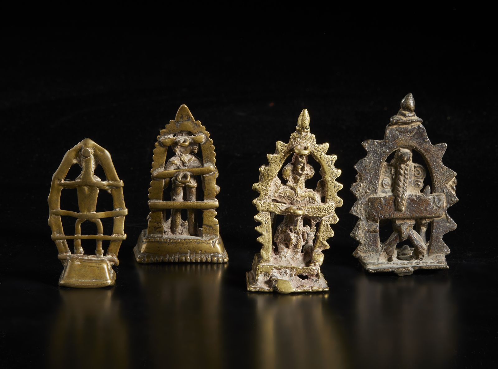 Gruppo di 4 altari in bronzo raffiguranti divinità tribali India popolare, XIX s [..]