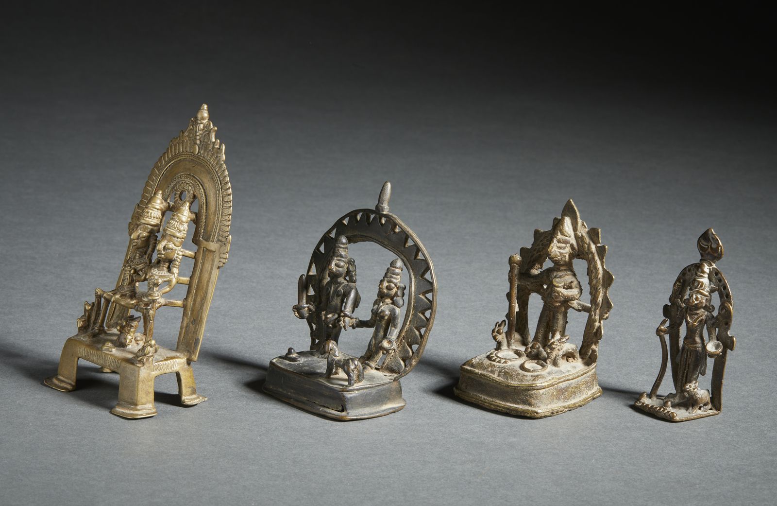 Gruppo di 4 altari in bronzo raffigurati divinitàIndia popolare, XIX secolo