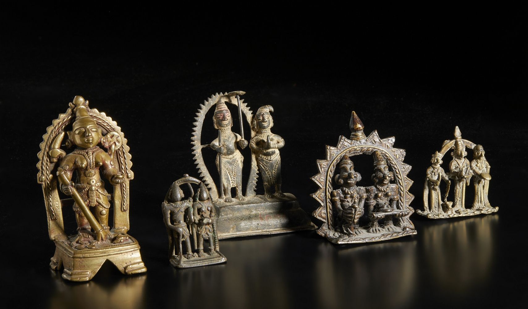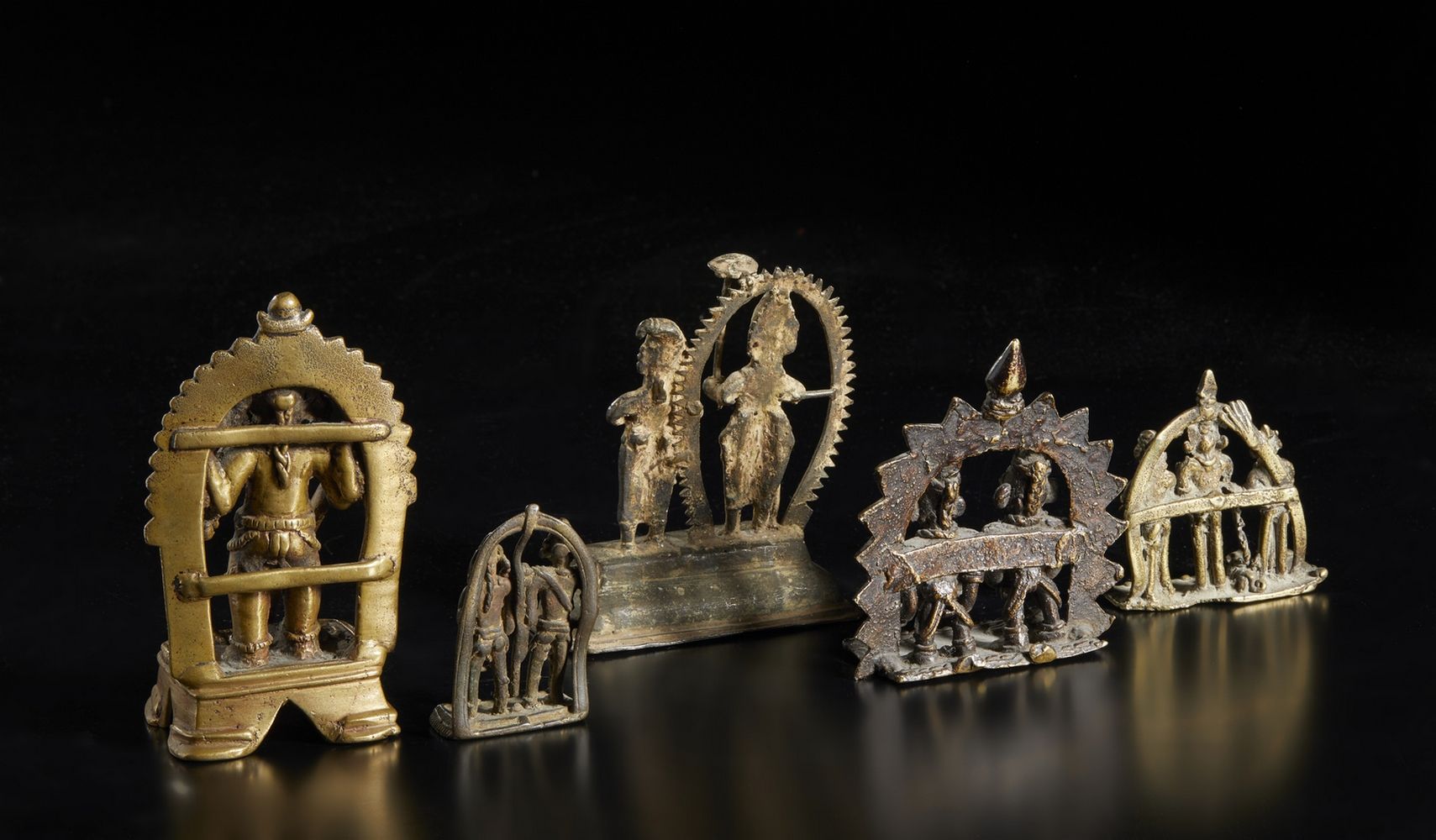 Gruppo di 5 altari devozionali in lega di rame India, XVIII-XIX secolo