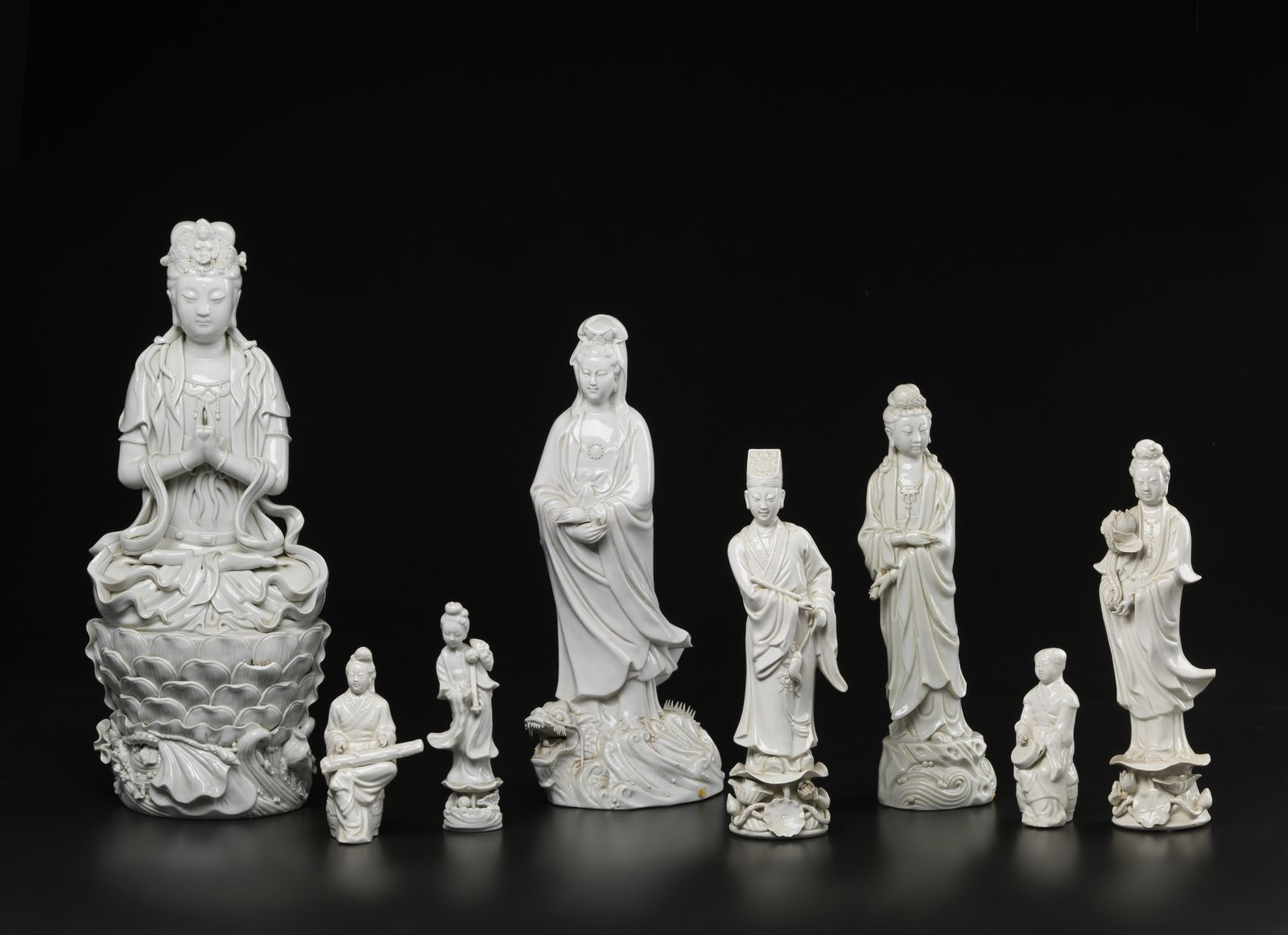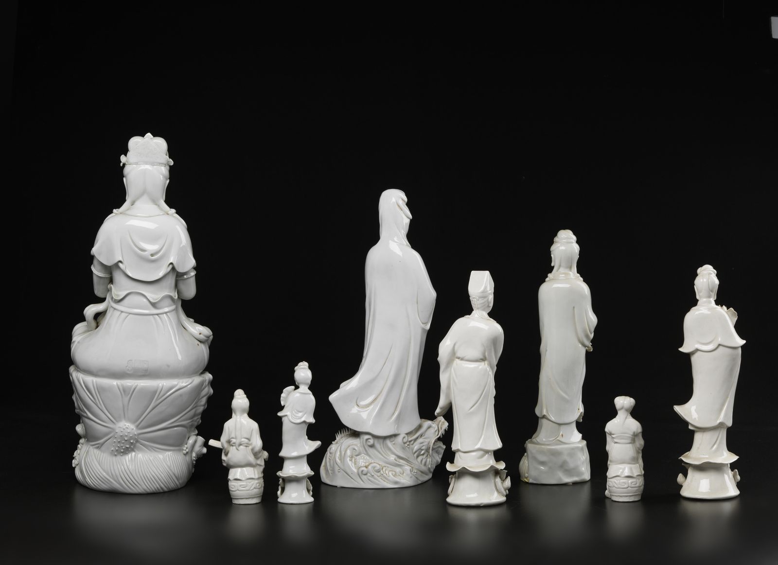 Gruppo di otto figure in porcellana dehuaCina, XIX - XX secolo