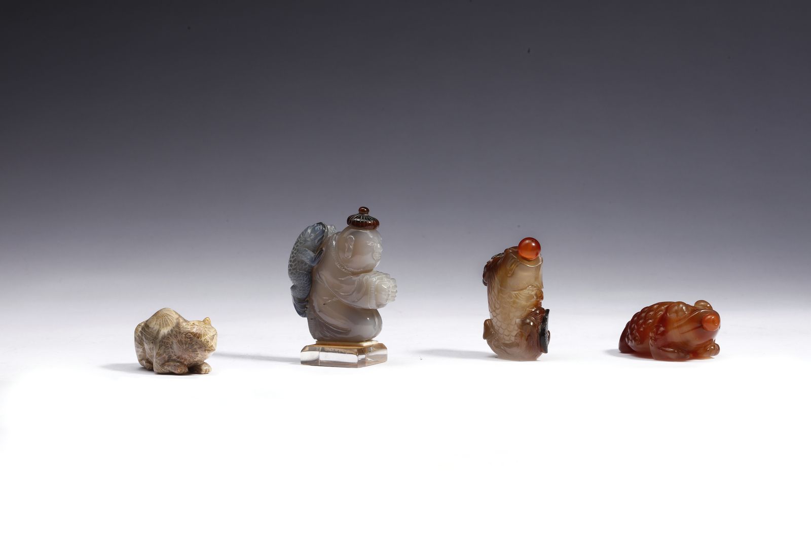 Gruppo di quattro tabacchiere zoomorfe in corniola e pietra semi preziosaCina, XIX [..]