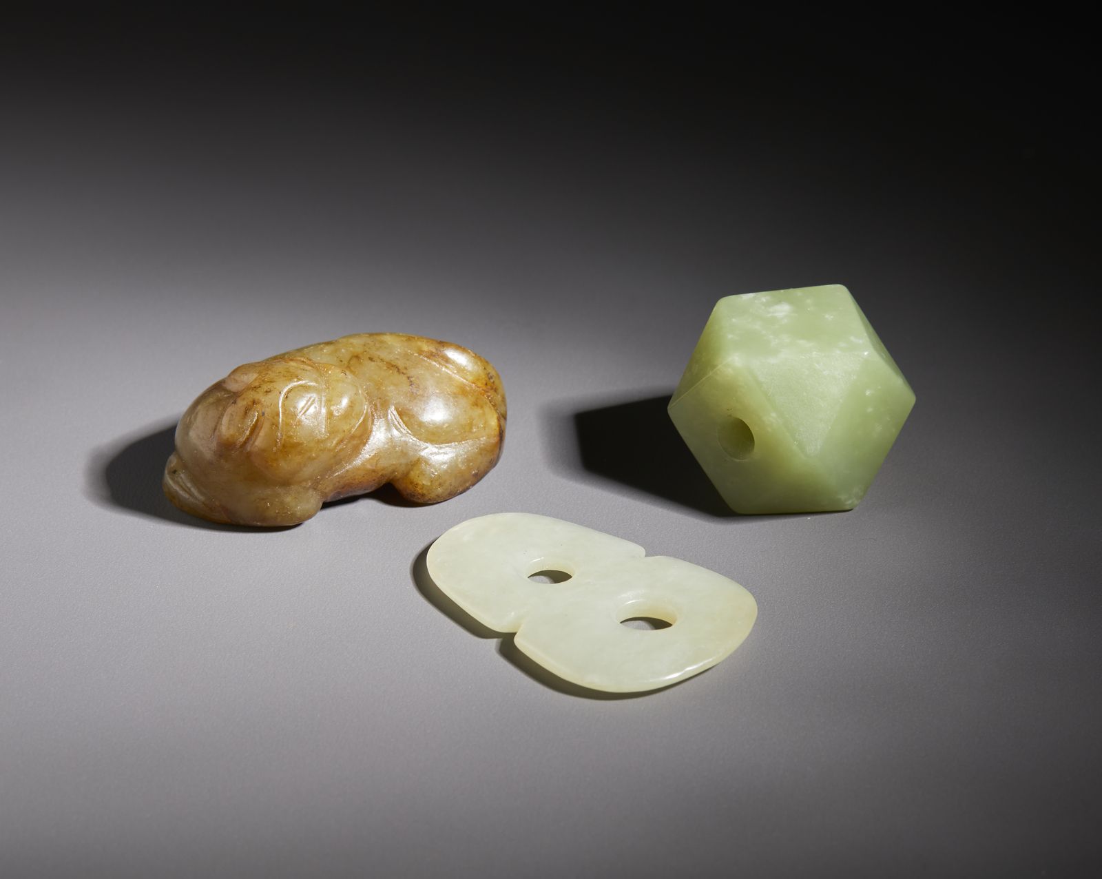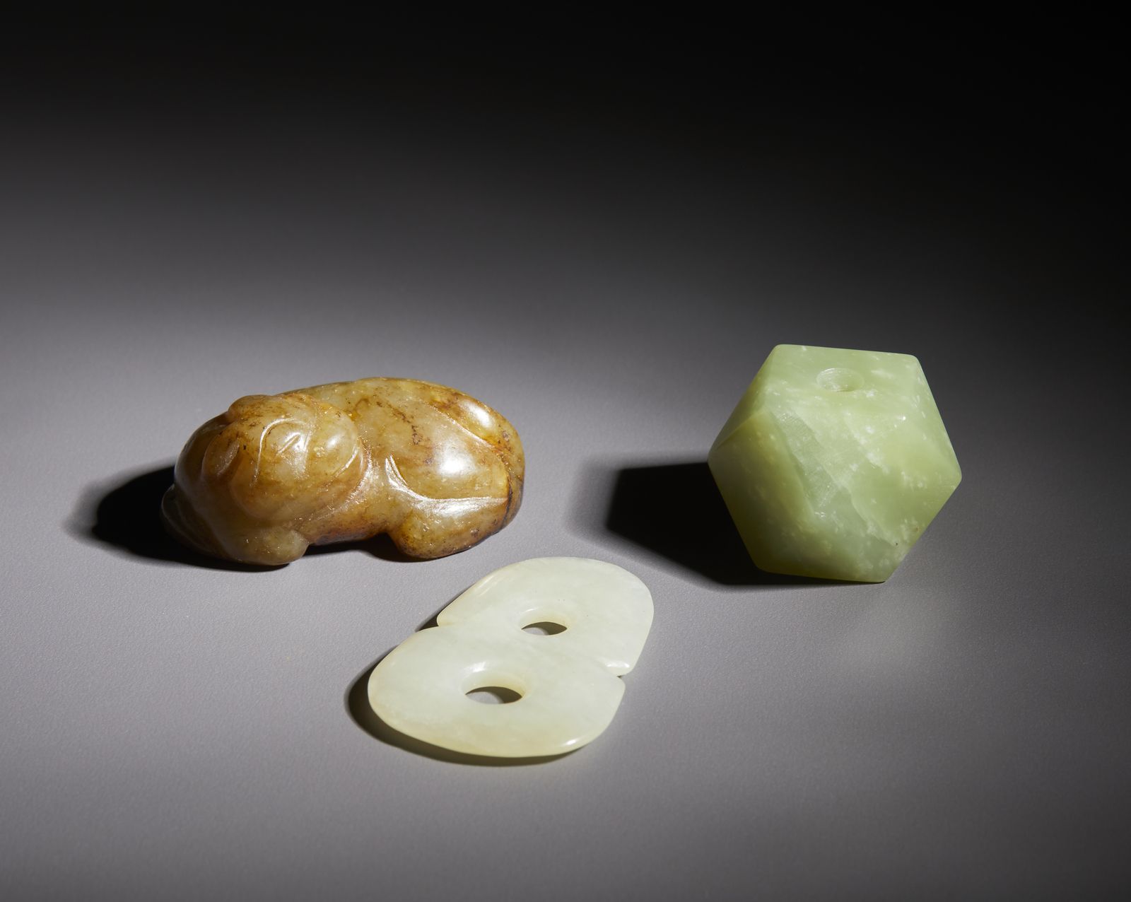 Gruppo di tre giade intagliate. Cina, XX sec.