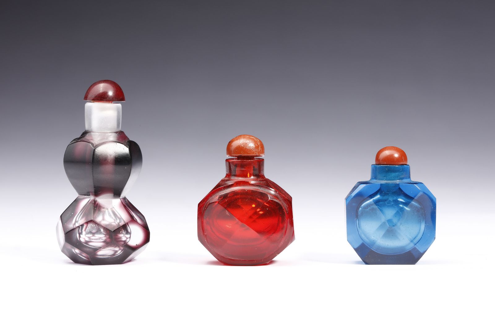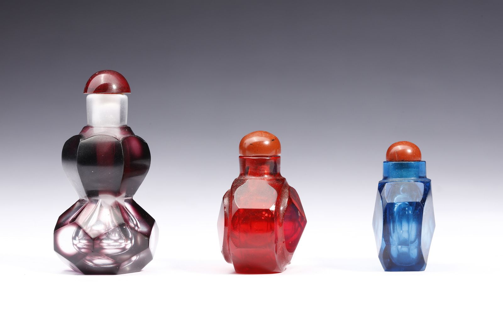 Lotto composto da tre tabacchiere in vetro molato Cina, XIX secolo