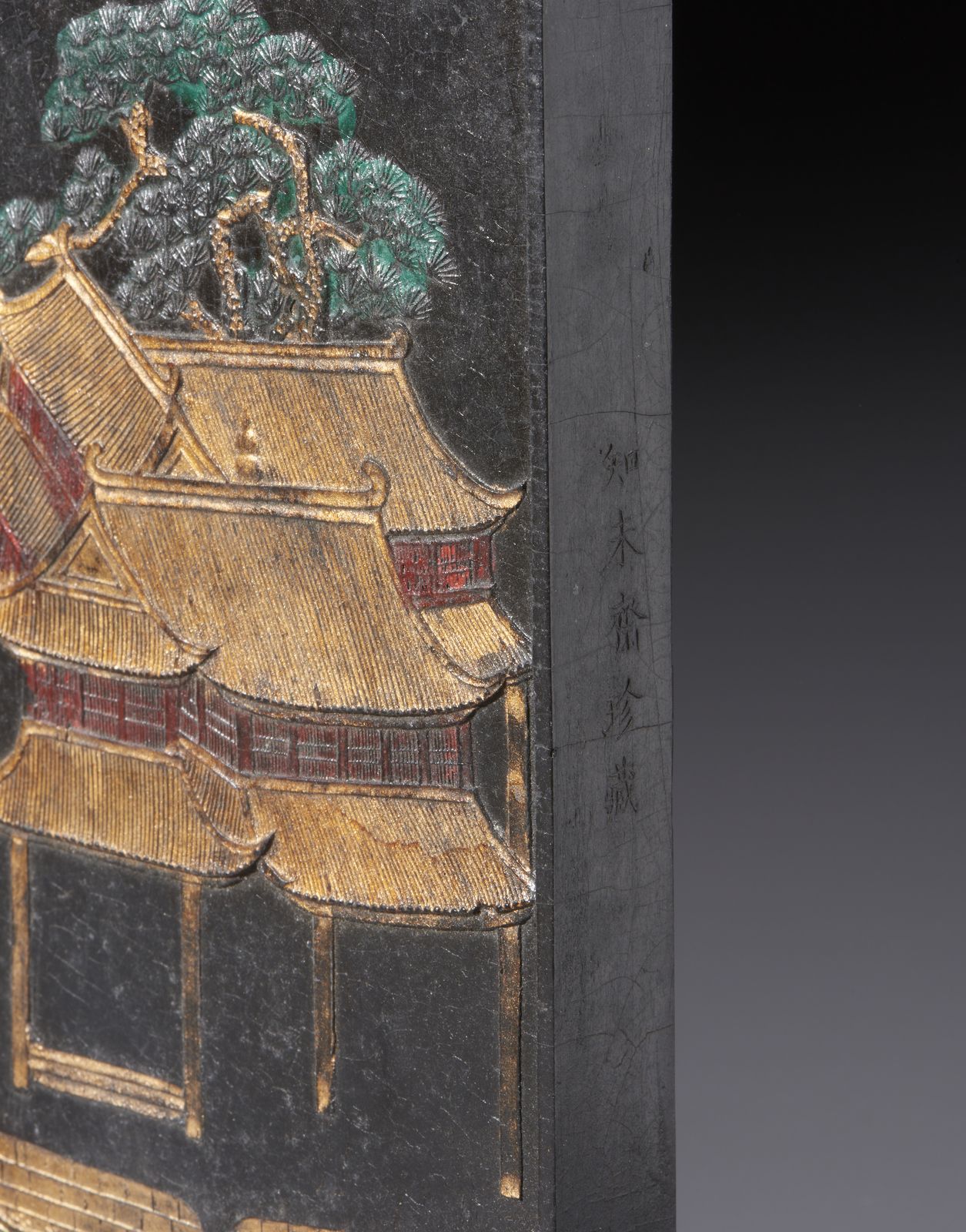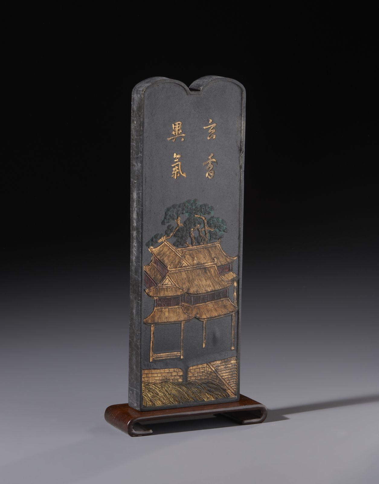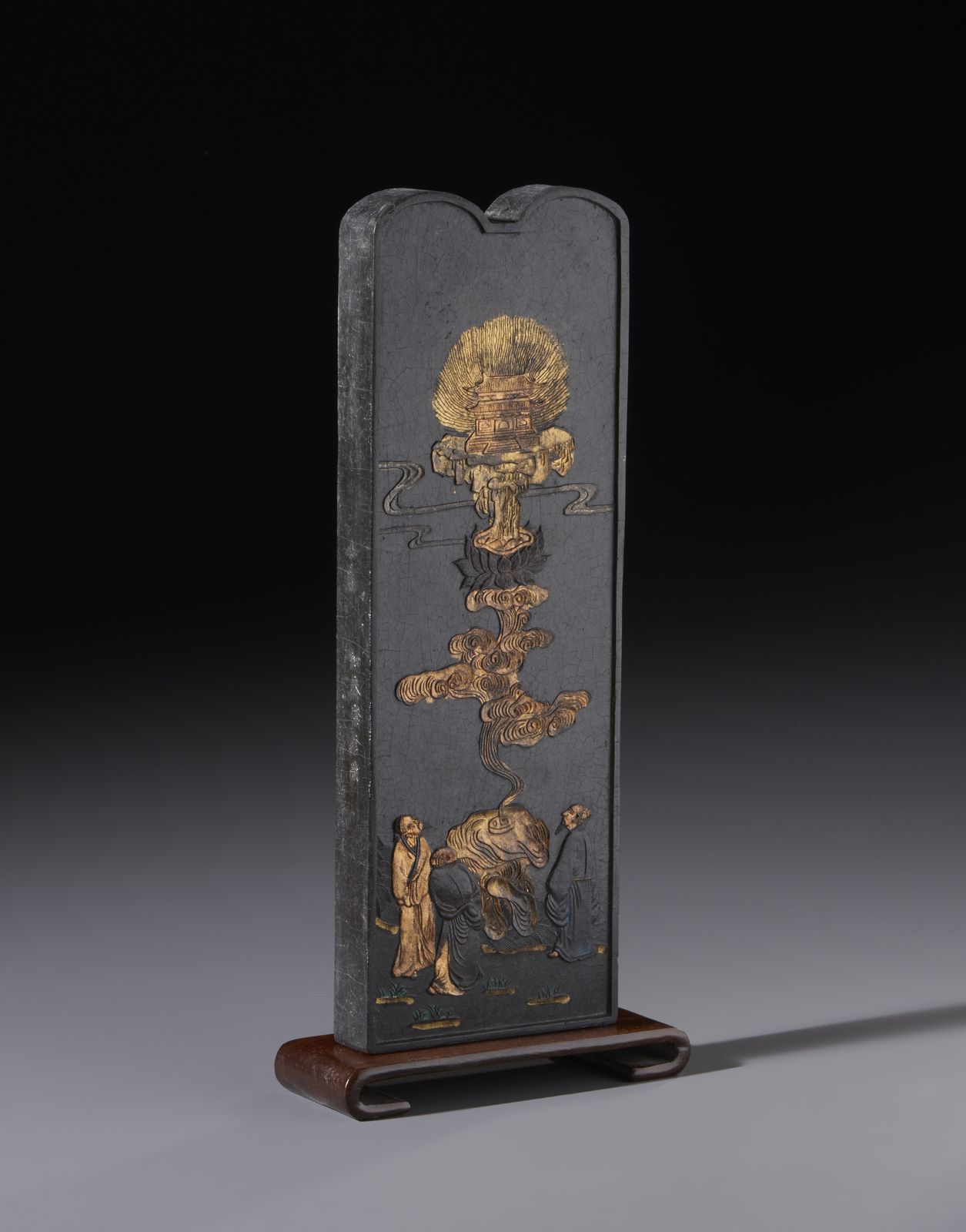 Tavoletta di inchiostro solido finemente lavorata e dorata. Cina, inizi XX sec.