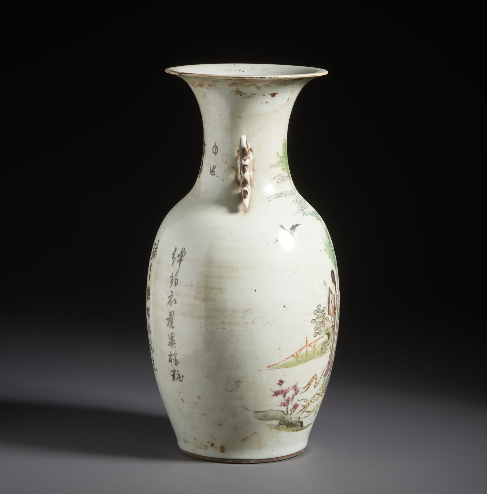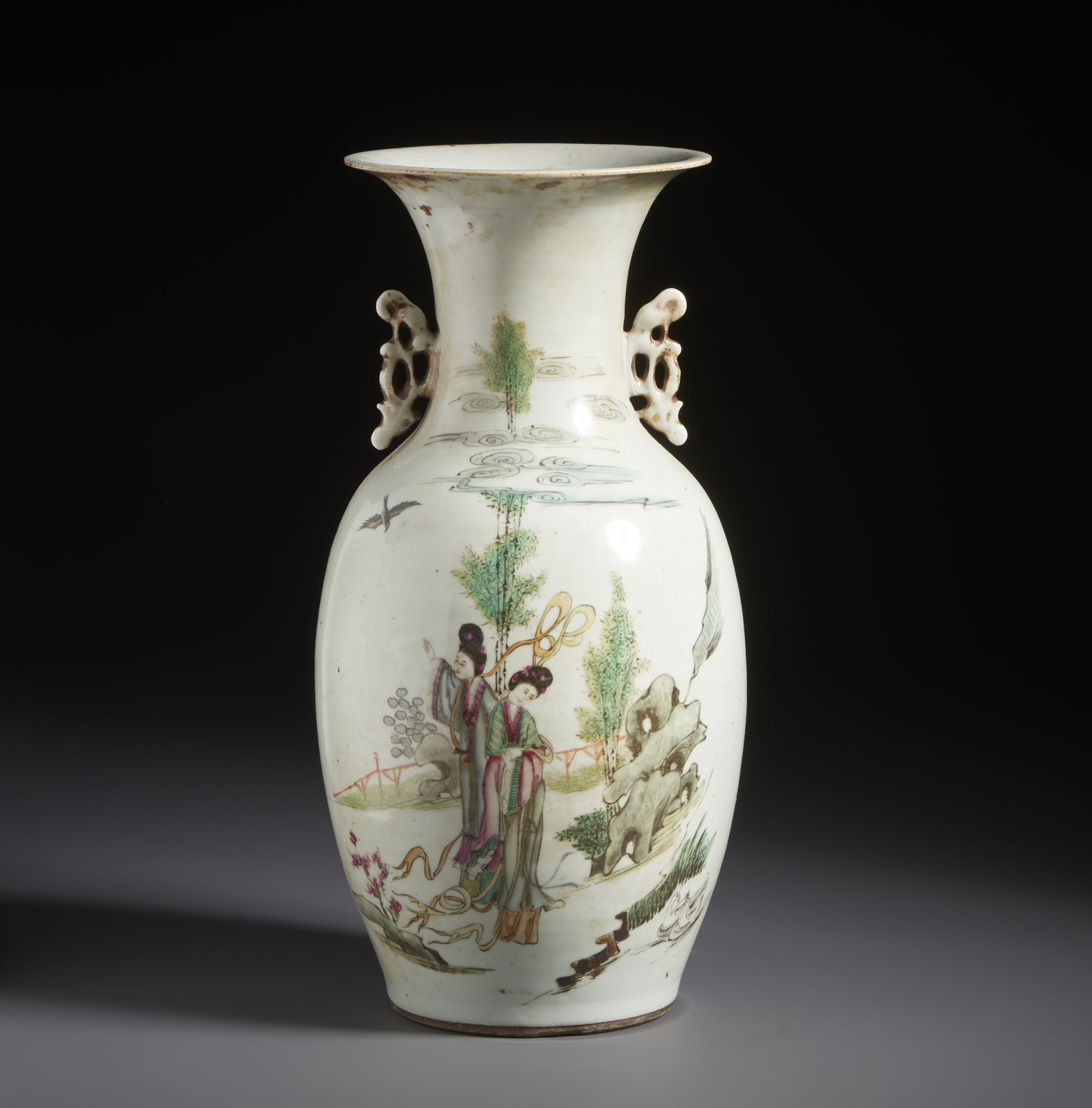 Vaso in porcellana a smalti policromi dalla forma a balaustra dipinto con fanciulle [..]