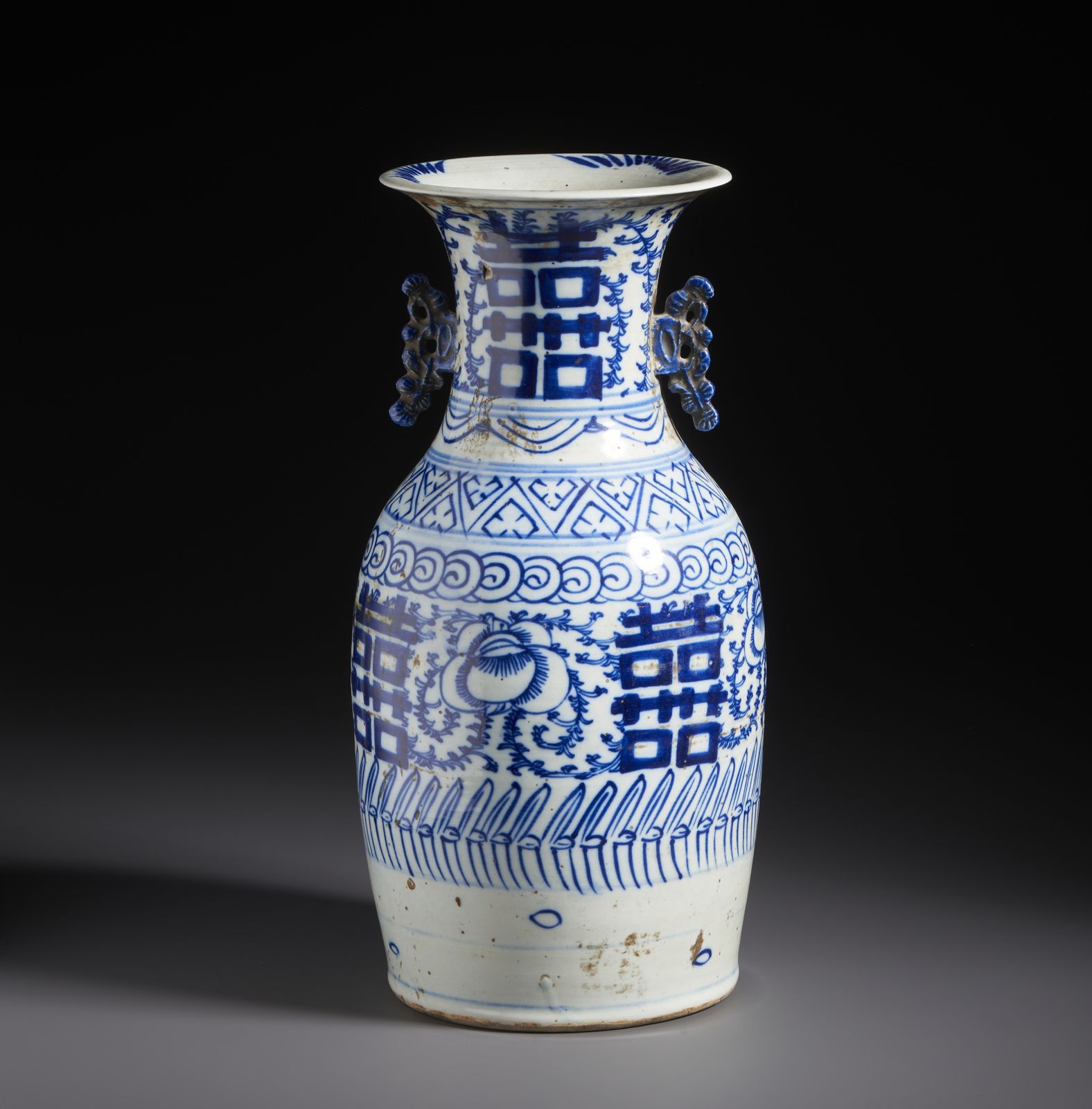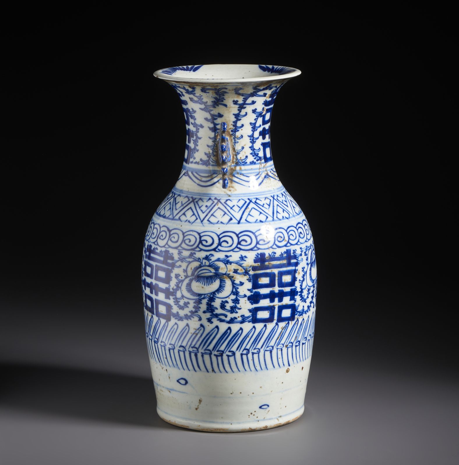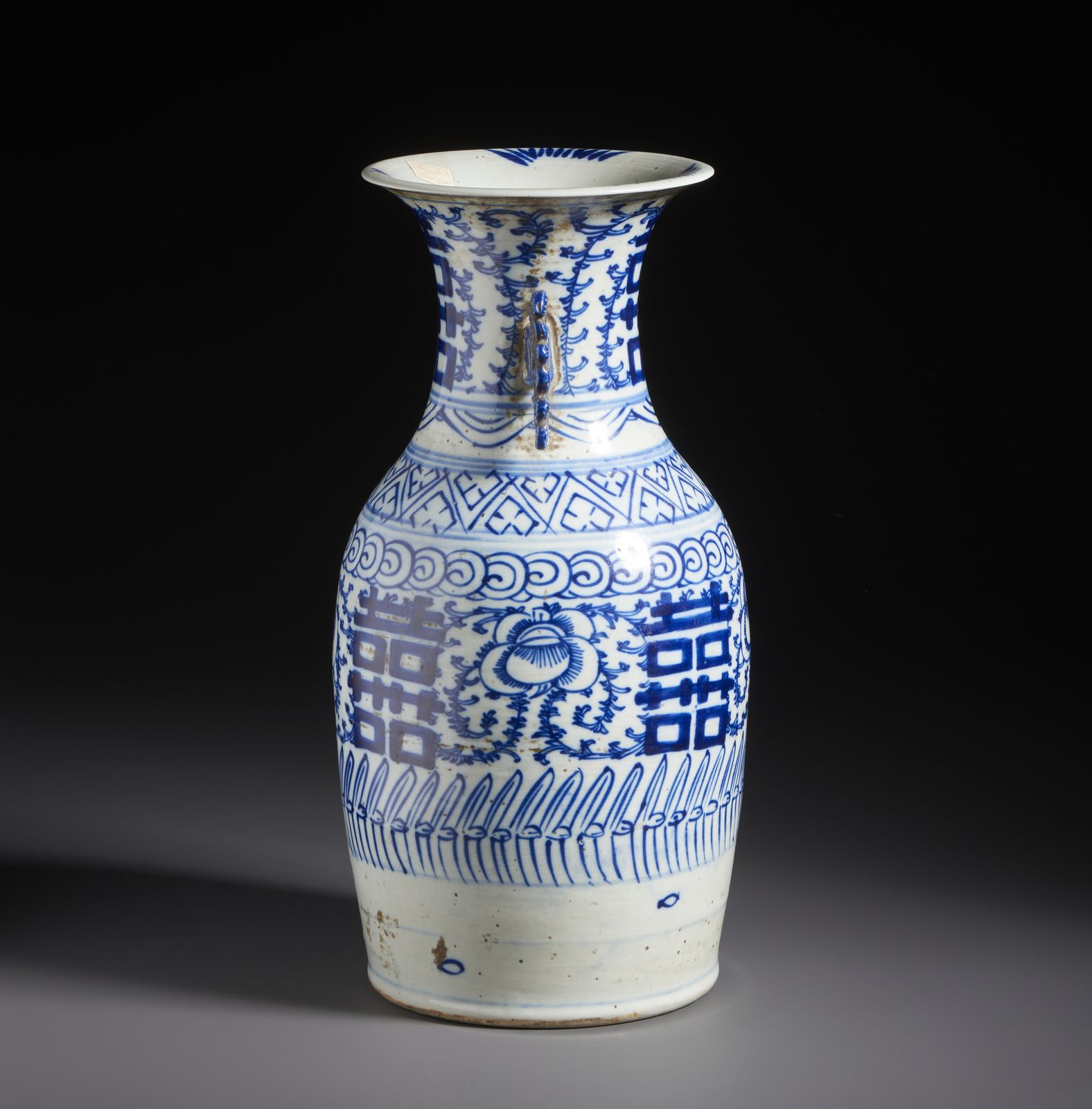 Vaso in porcellana bianco e blu dalla forma a colonna di balaustra dipinto con simboli [..]