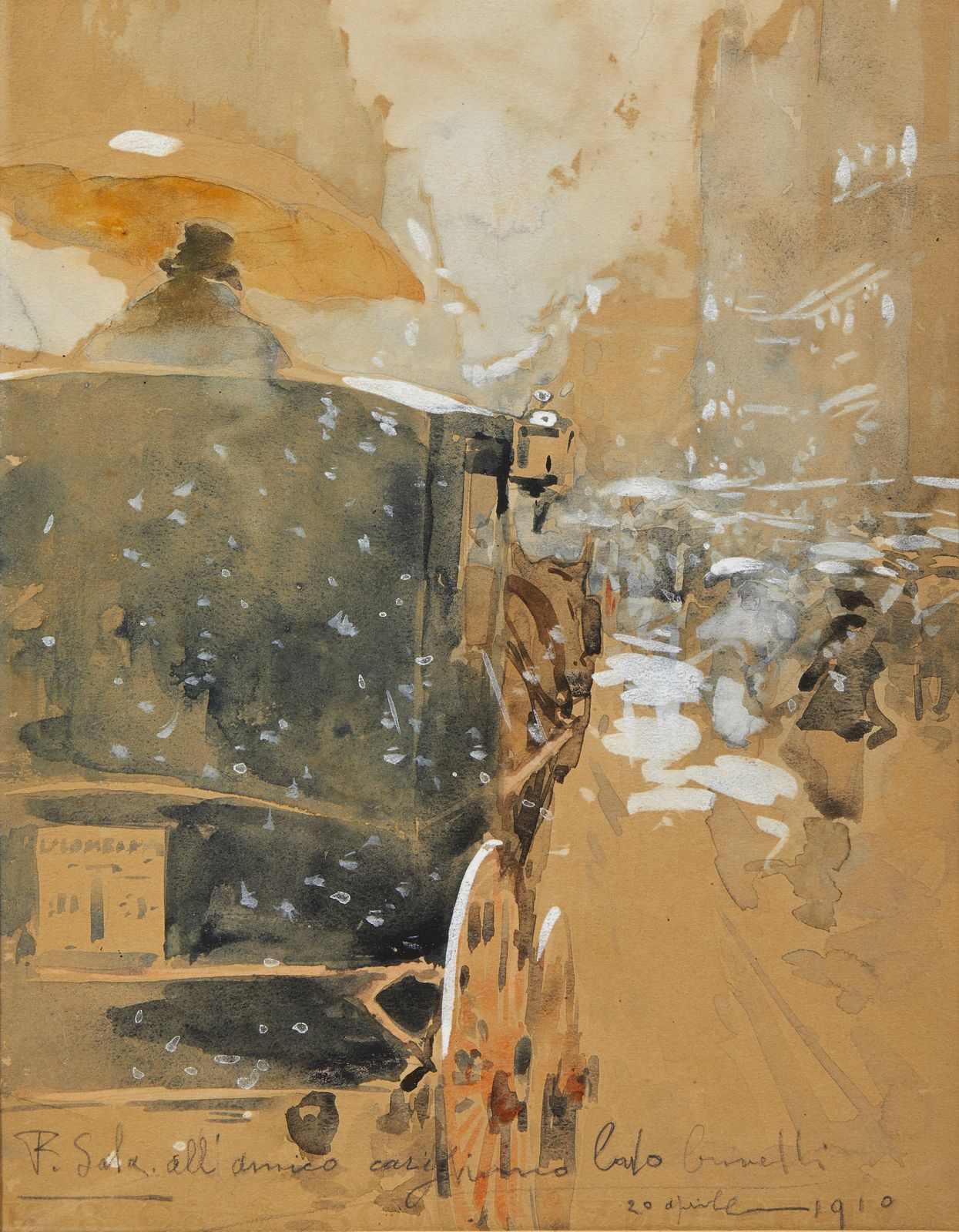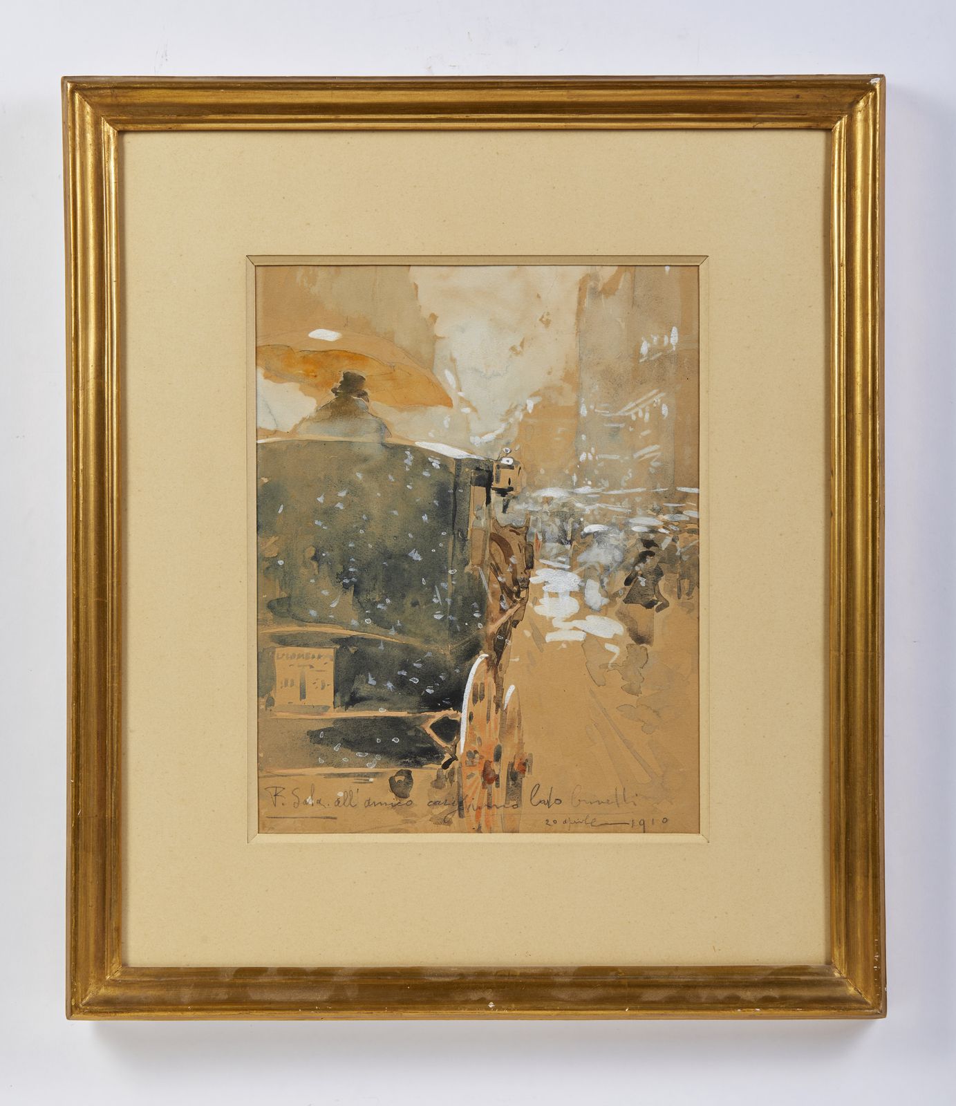 Firmato in basso a sinistra, dedicato e datato 1910 in basso a destra.