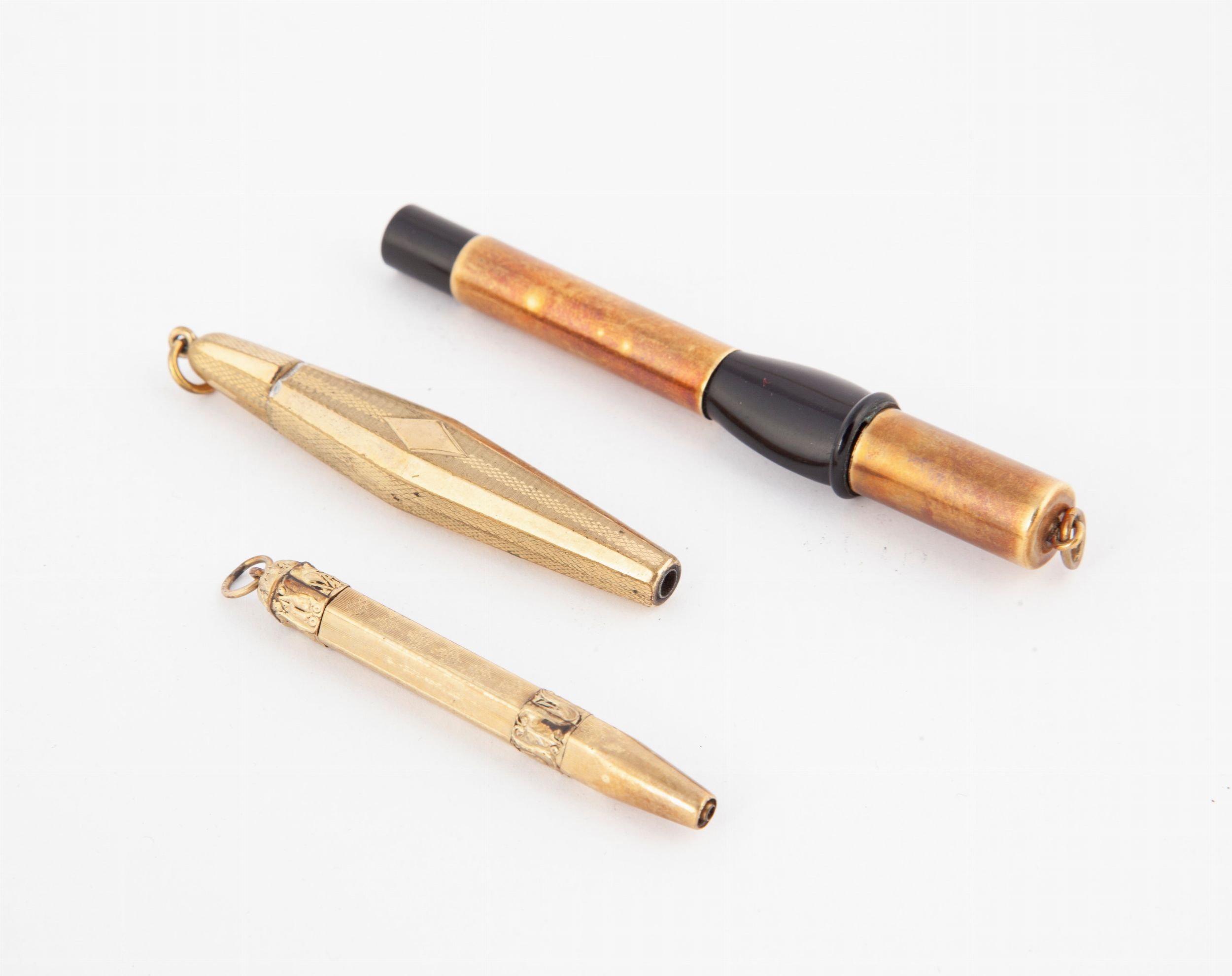 2 matite laminate in oro giallo 18 Kt e 1 porta mine in metallo laminato in oro [..]